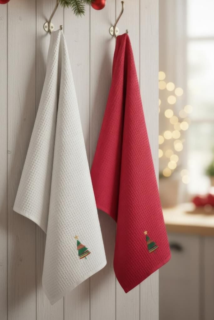?? 2’li Yılbaşı Temalı Nakışlı Havlu Seti "Nuevo" 40x60 cm ??