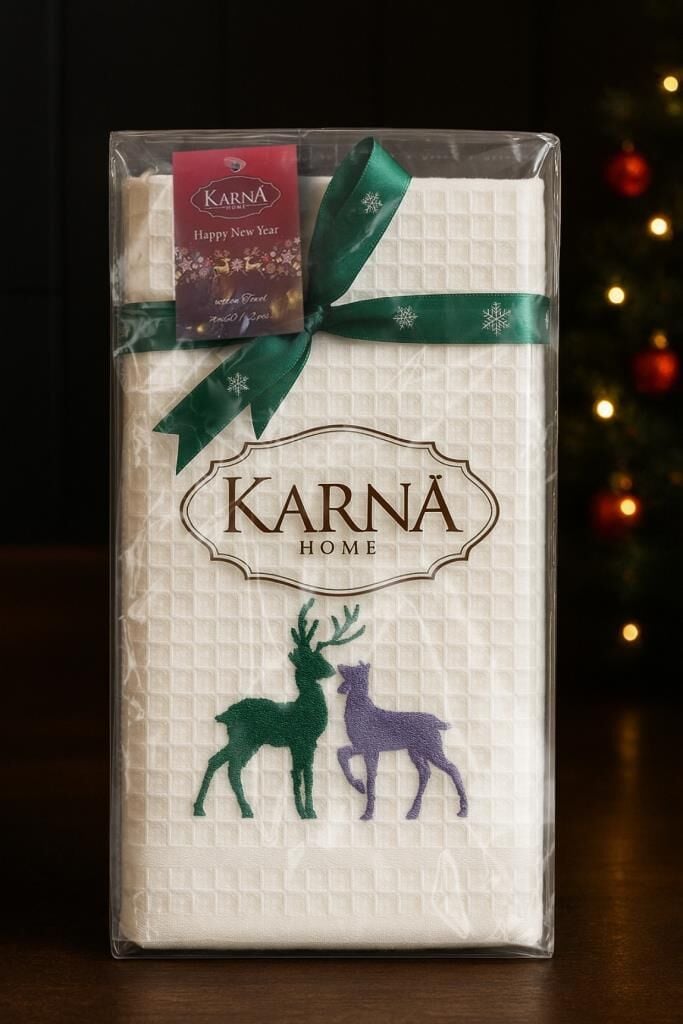 ?? 2’li Yılbaşı Temalı Nakışlı Havlu Seti "Nuevo" 40x60 cm ??