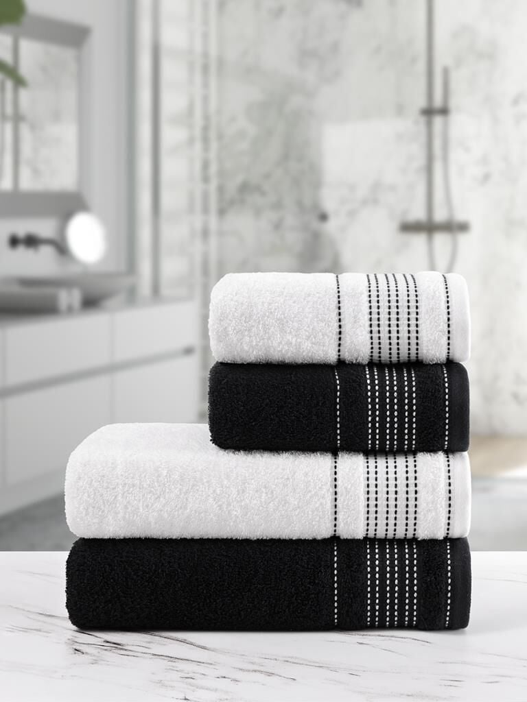 Premium 4 lü Havlu Seti Ladin 70x140 / 50x90 Siyah-Beyaz