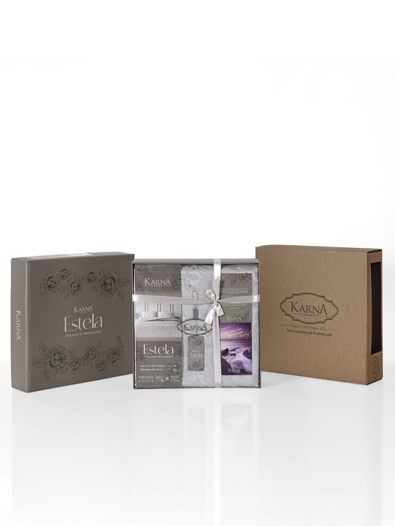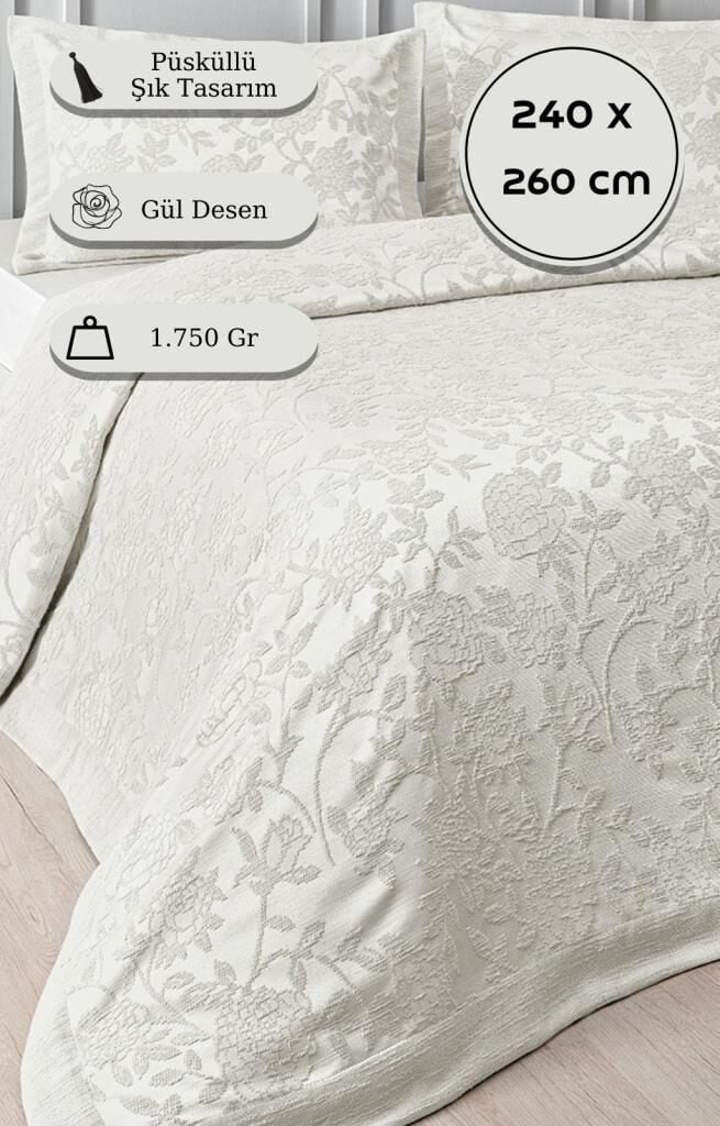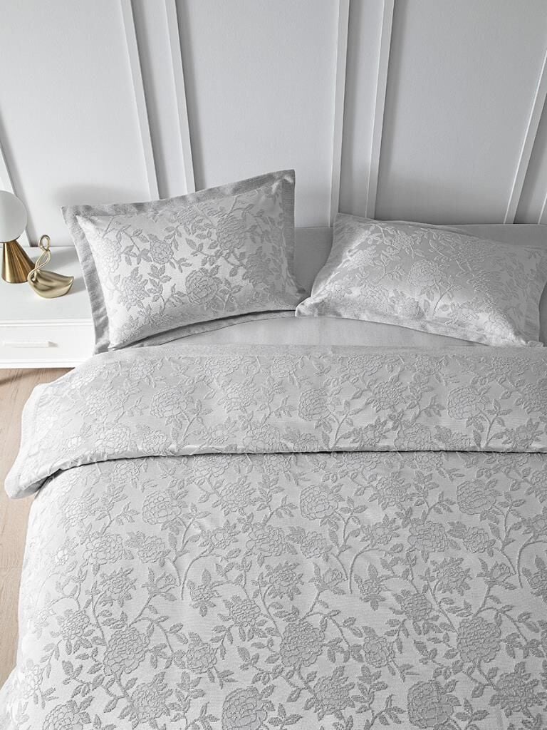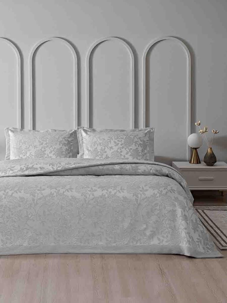Yatak Örtüsü Seti Jakarlı Estela Açık Gri - 240 X 260