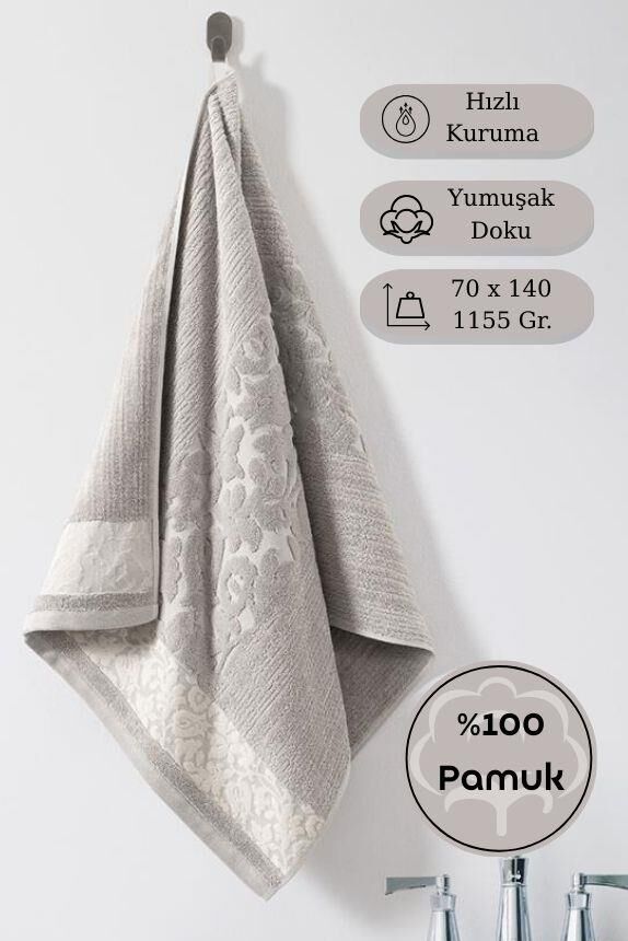 Pamuk Tekli Havlu Jakarlı Karna Premıum Sıbell - 70 x 140 Açık Gri - 70 X 140