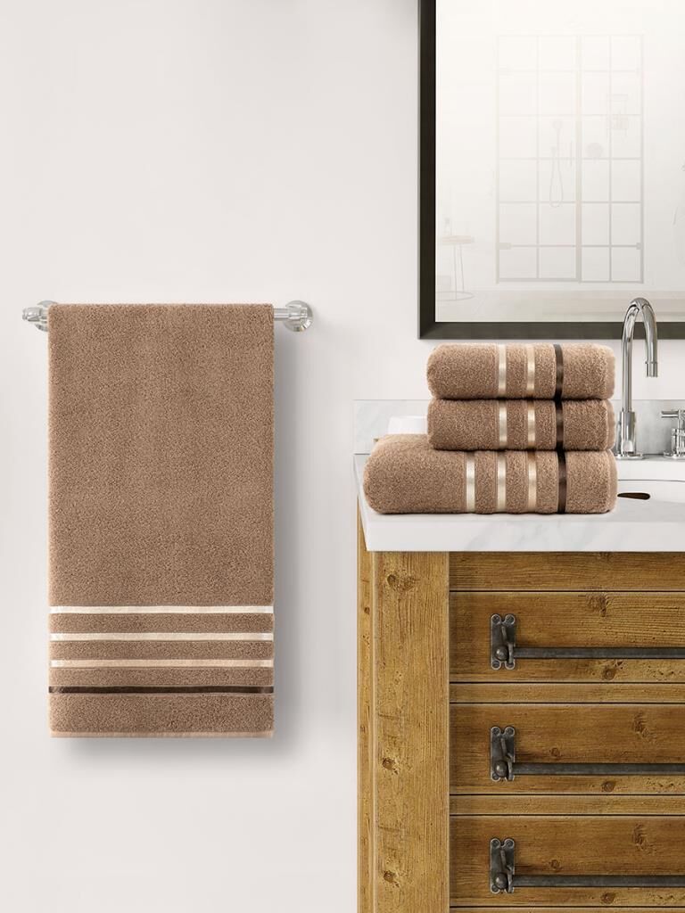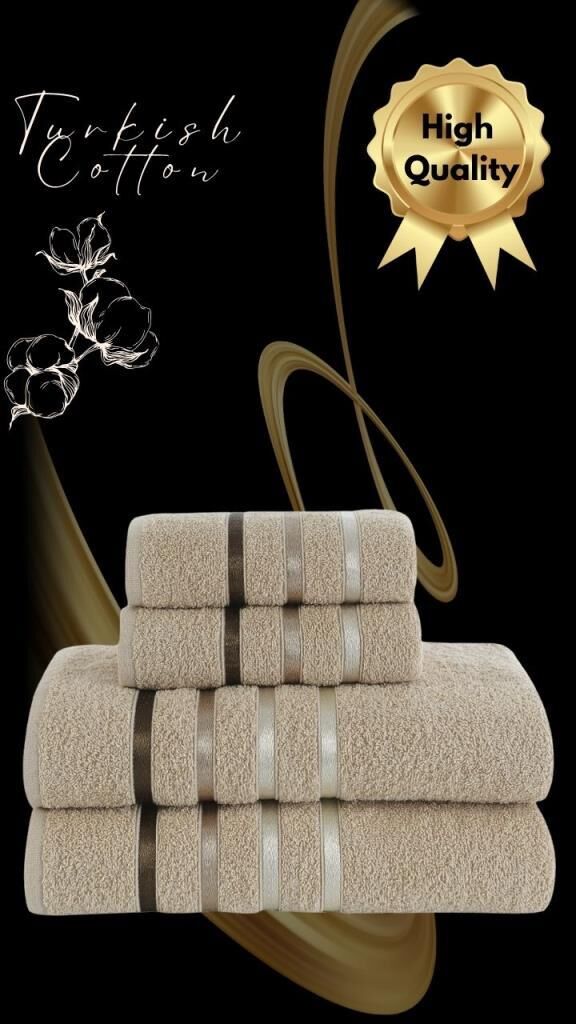 Banyo Havlu Seti 4 Lü Bale Premium - 70X140cm x2 / 50x90cm x2 Sütlü Kahve - 70 X 140