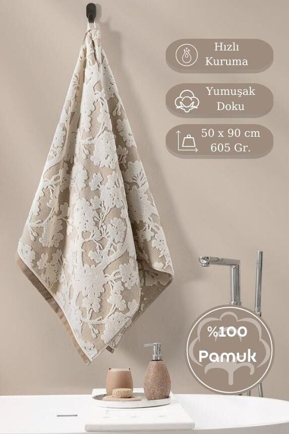 Pamuk Tekli Havlu Jakarlı Karna Eco Batıs - 50 x 90 Bej - 50 X 90
