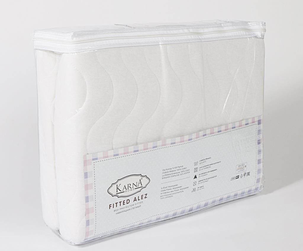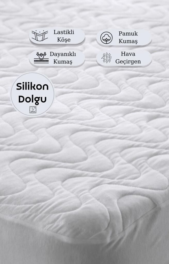 Kapitoneli Yatak Alezi: Ürün 4 kenarı (Fitted) lastikli olup, üst kumaş %100 pamuk, iç dolgu silikondan imal edilmiştir. Dogun bir yapıya sahip olan ürün, yatağa rahatça oturur. Yatağınızı kirden, tozdan korur, böylece ürünün ömrünü uzatır. Bu modelin avantajları: - Hipoalerjenik bileşim. - Hava geçirgenliği iyidir, vücut "nefes alır". - Rahat ve komforludur, vücüdü tahriş etmez. - Aşınmaya dayanıklı. - Bakımı, çıkarması ve yıkaması kolay, ütü gerektirmez. - Yıkama talimatlarına göre yıkandığında, renk solmaz ve kalitesini uzun süre korur. - Ürünü kullanmadan önce yıkamanız tavsiye edilir. Sabitleme turu; 4 kenarı (Fitted) lastikli. Üretim Türkiye.