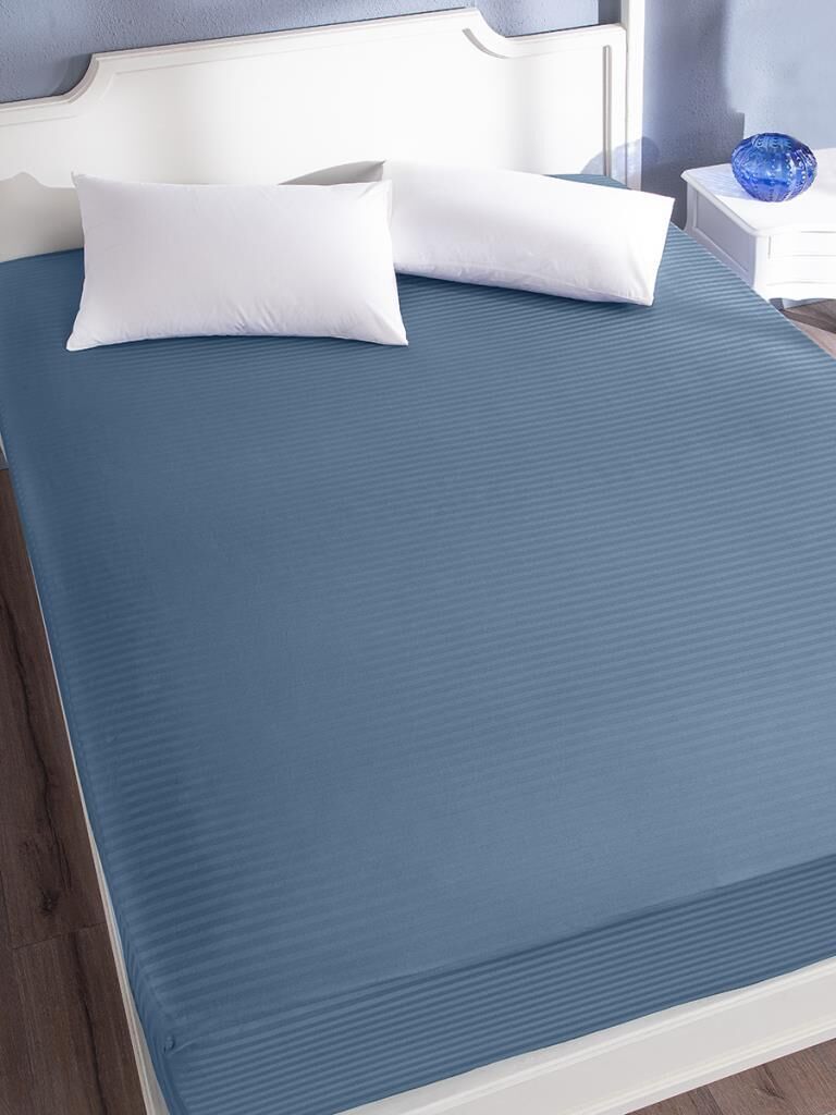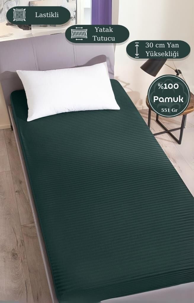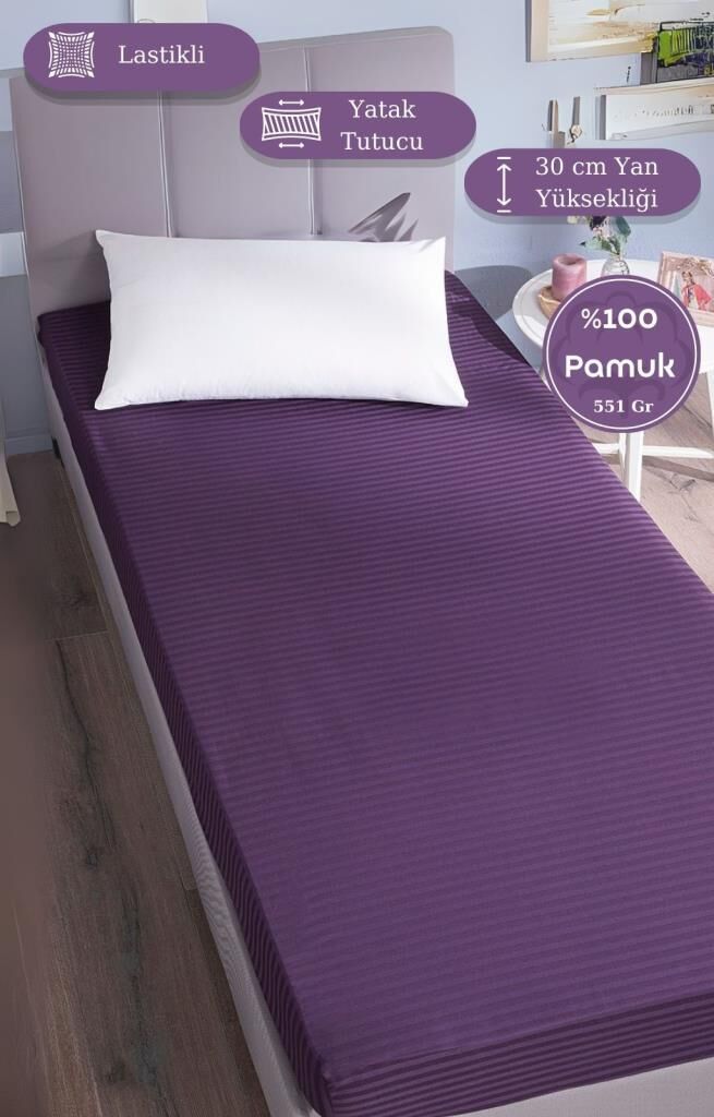 Çarşaf Stripe Saten Düz Lastikli Geniş Ölçü