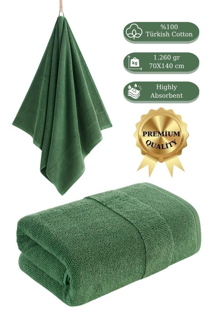 Cotton %100 Banyo Havlusu 70x140 cm Yeşil - 70 X 140