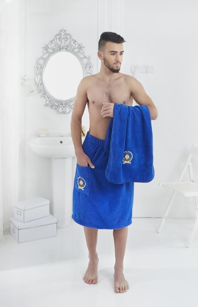 Cotton Pamır Erkek Sauna Havlu Seti Saks Mavisi