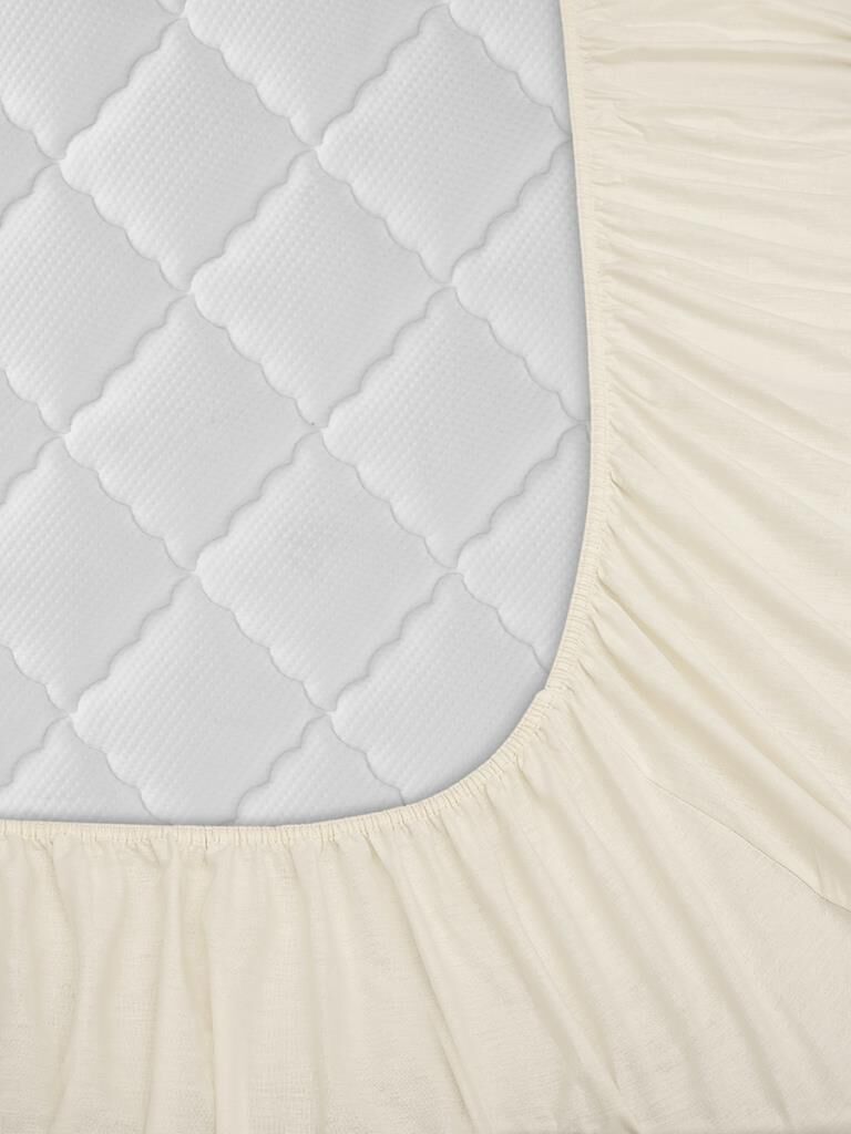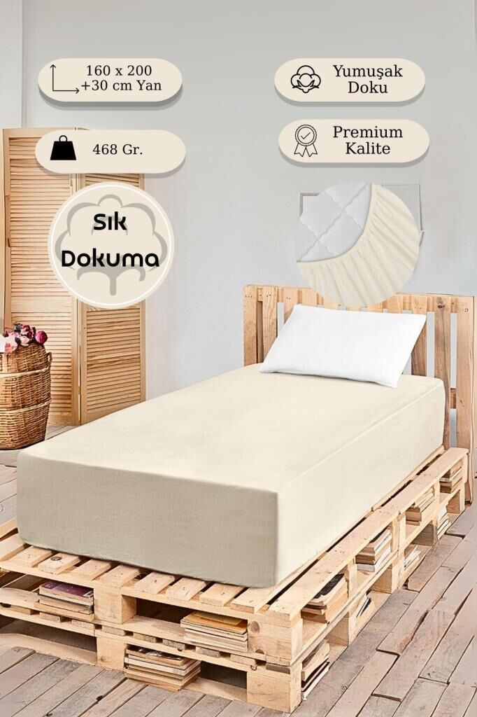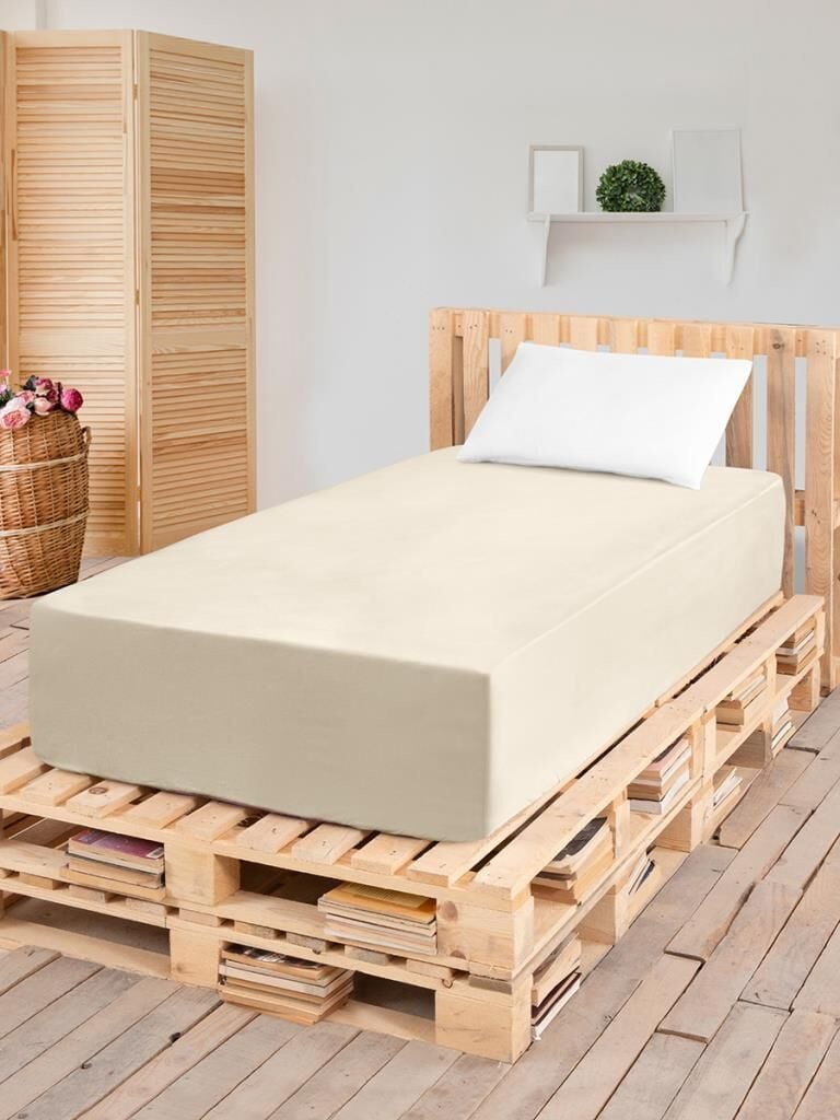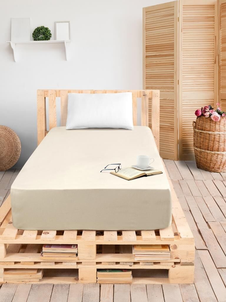 Düz Lastikli Tek Kişilik Percale Çarşaf 160x200 + 30cm Krem - 160 X 200
