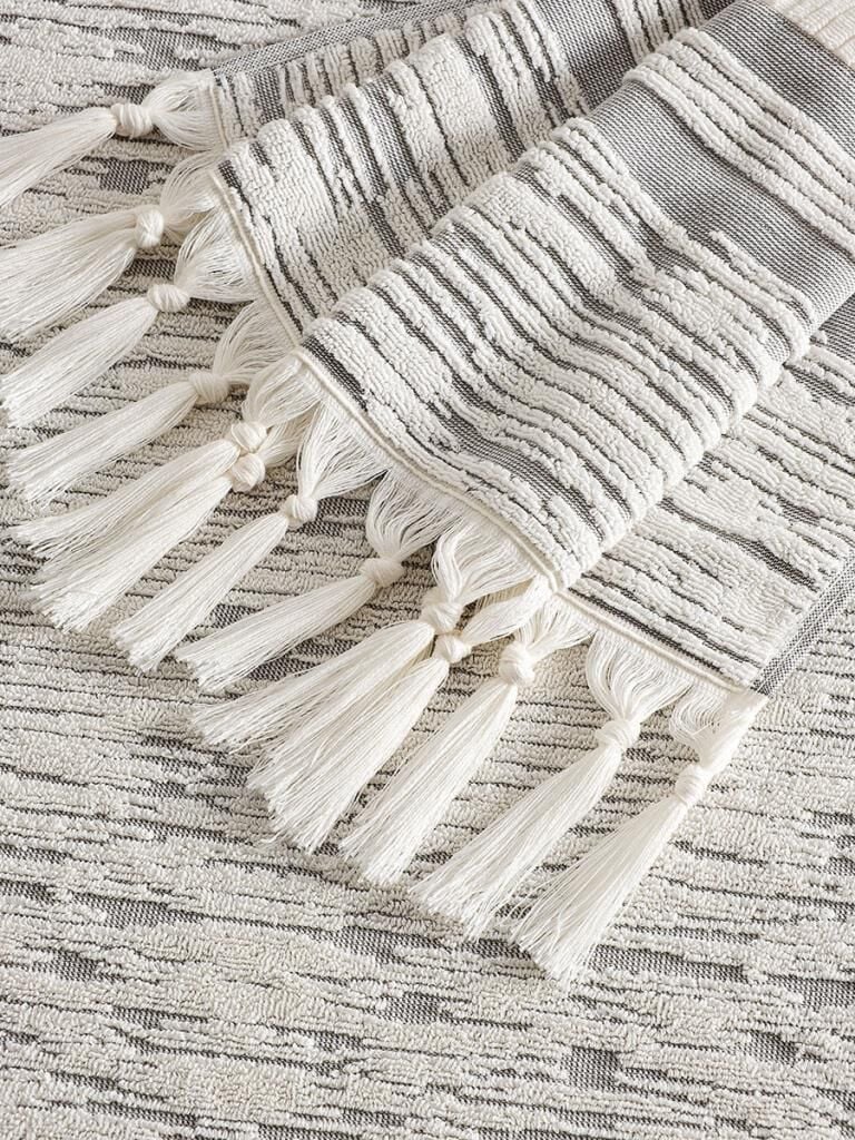 Pamuk Tekli Havlu Jakarlı Karna Premıum Stella - 50 x 90 Gri - 50 X 90