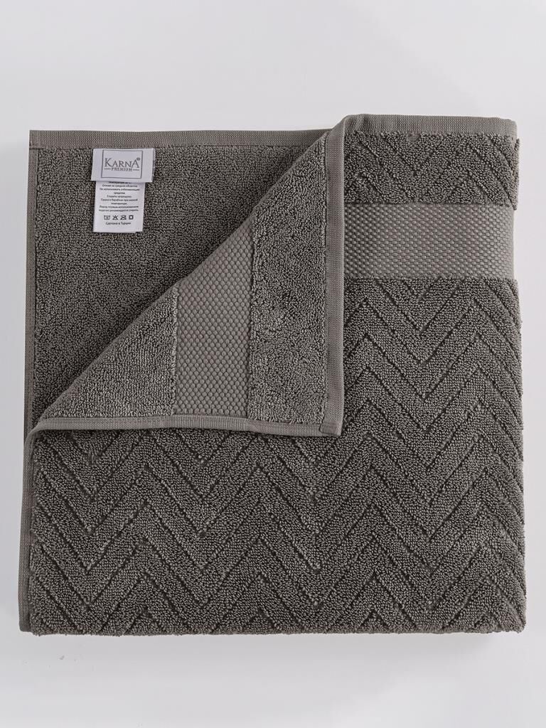 Pamuk Tekli Havlu Jakarlı Karna Premıum Zander - 70 x 140 Gri - 70 X 140