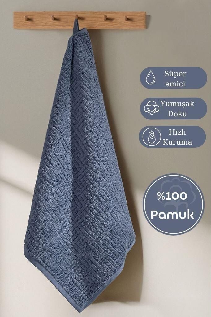Pamuk Tekli Havlu Jakarlı Karna Premıum Molıs - 50 x 90 İndigo - 50 X 90