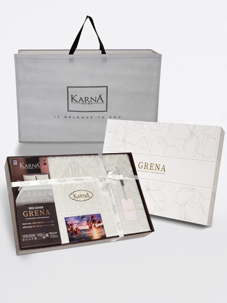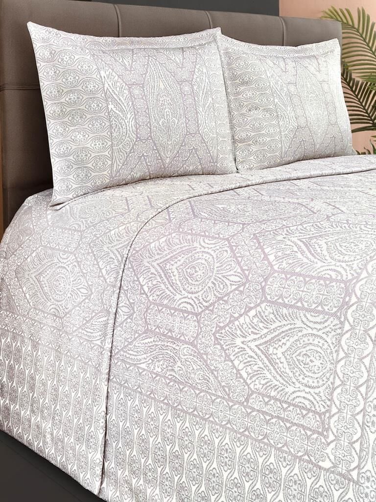 Jakarlı Grena Yatak Örtüsü Seti Mürdüm - 240 X 260
