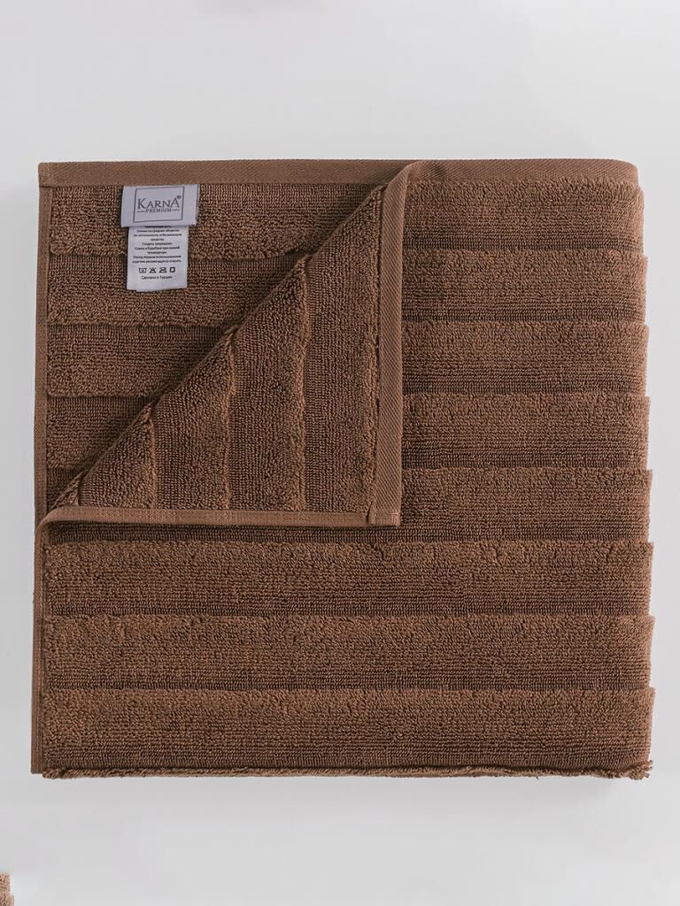 Pamuk Tekli Havlu Jakarlı Karna Premıum Venna - 50 x 90 Kahverengi - 50 X 90