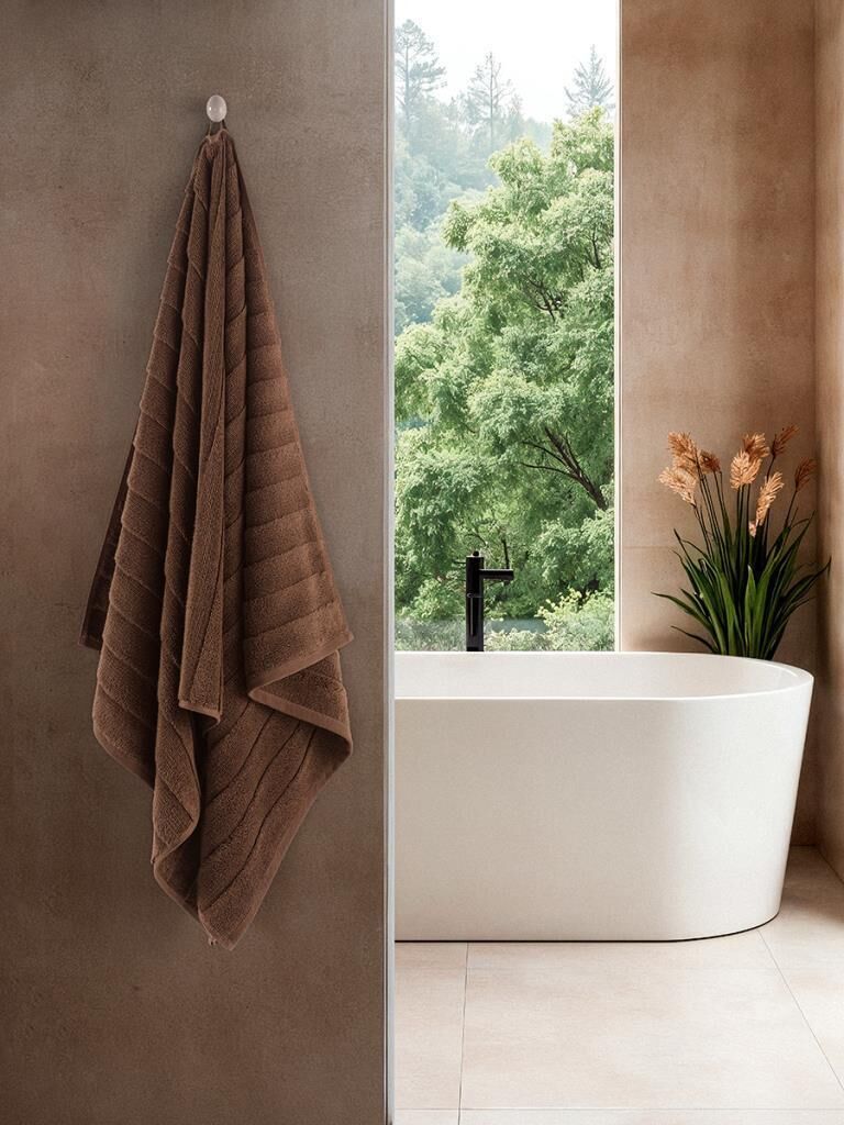 Pamuk Tekli Havlu Jakarlı Karna Premıum Venna - 70 x 140 Kahverengi - 70 X 140
