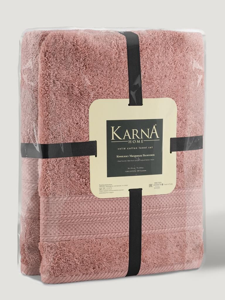 Karna Solid Pamuklu Havlu Seti 70x140 Gül Kurusu