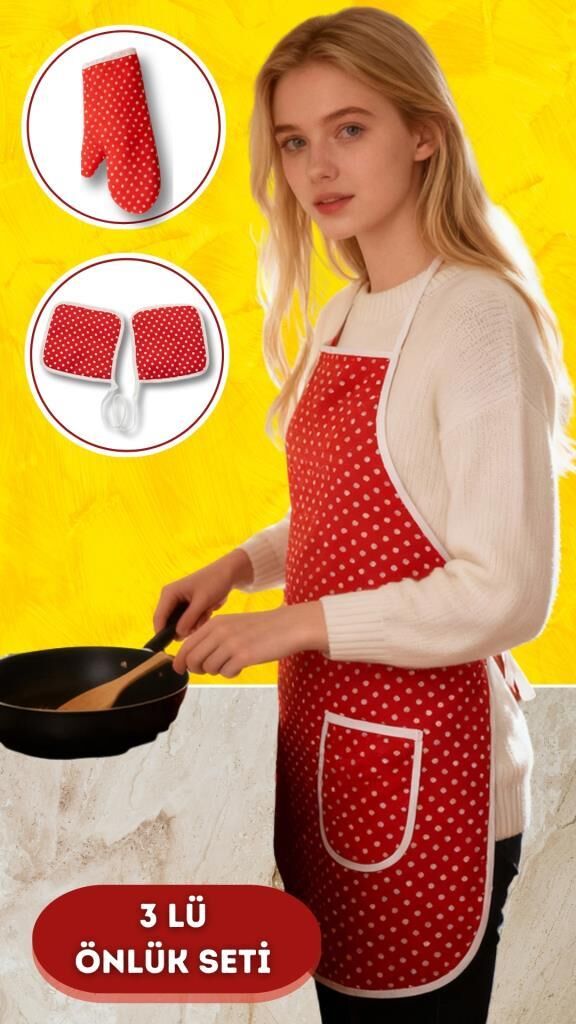 - Set İçeriği: 1 Adet Önlük, 1 Adet Fırın Eldiveni, 1 Adet Tutacak