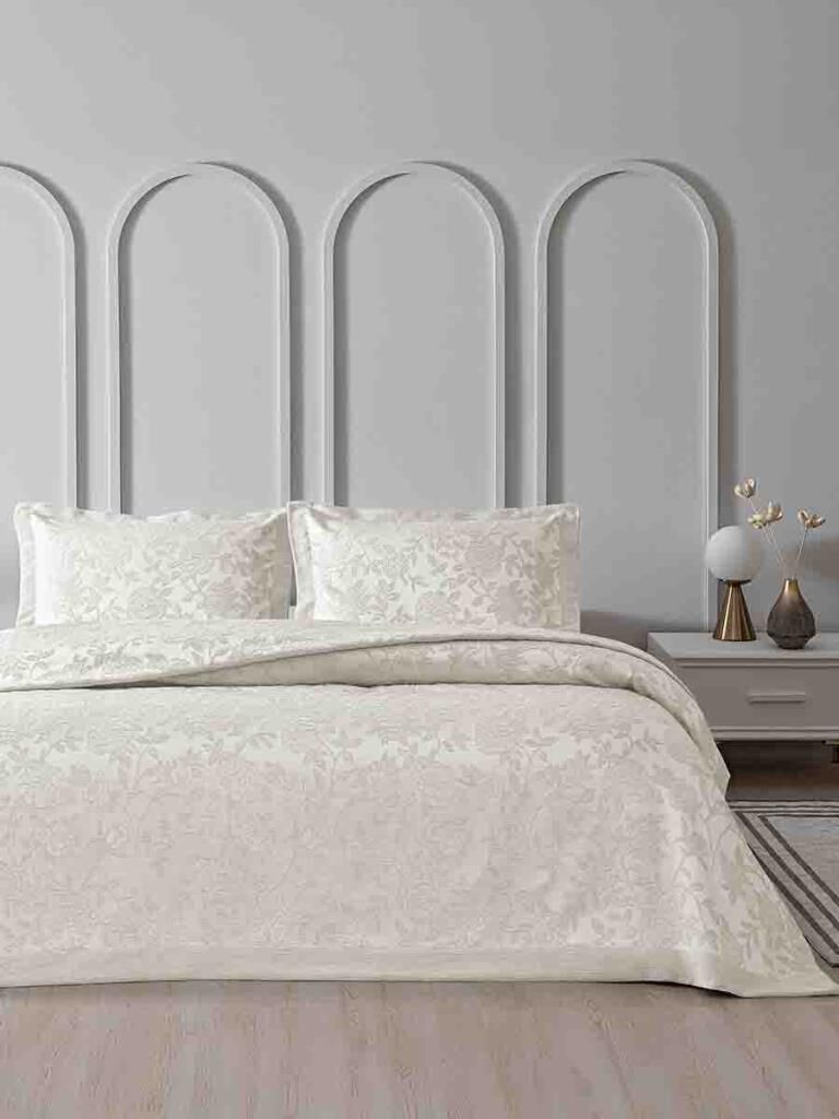 Yatak Örtüsü Seti Jakarlı Estela Krem - 240 X 260