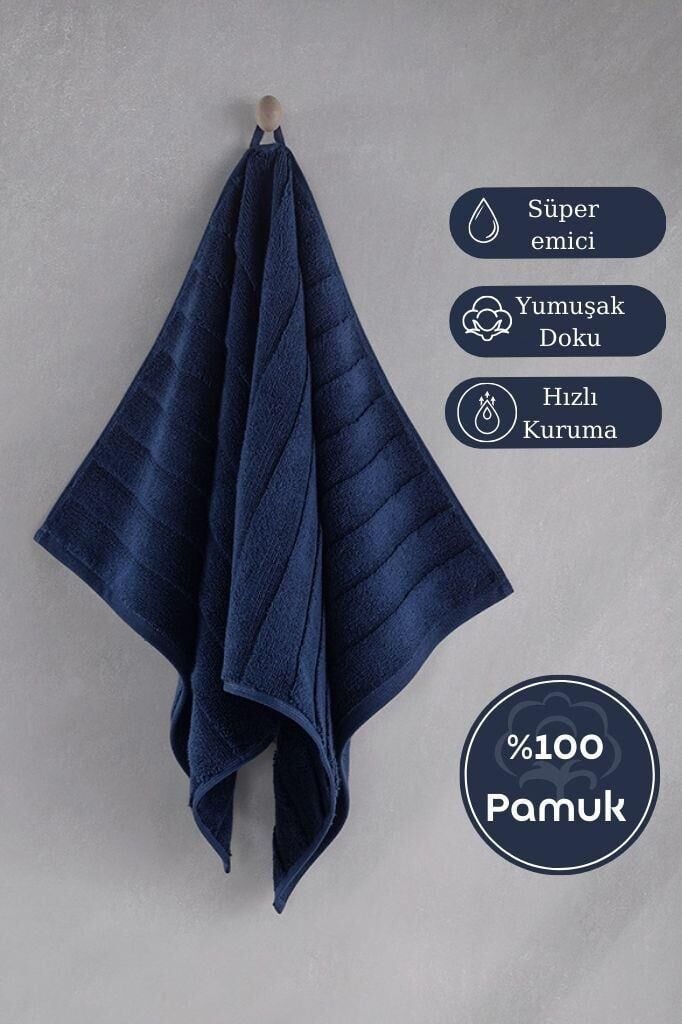 Pamuk Tekli Havlu Jakarlı Karna Premıum Venna - 50 x 90 Lacivert - 50 X 90