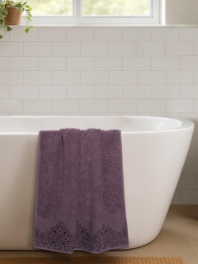 Pamuk Tekli Havlu Jakarlı Karna Home Klover - 50 x 90 Lavanta - 50 X 90