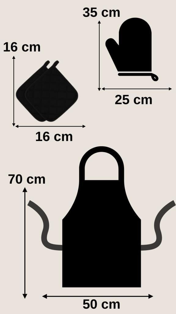 - Set İçeriği: 1 Adet Önlük, 1 Adet Fırın Eldiveni, 1 Adet Tutacak