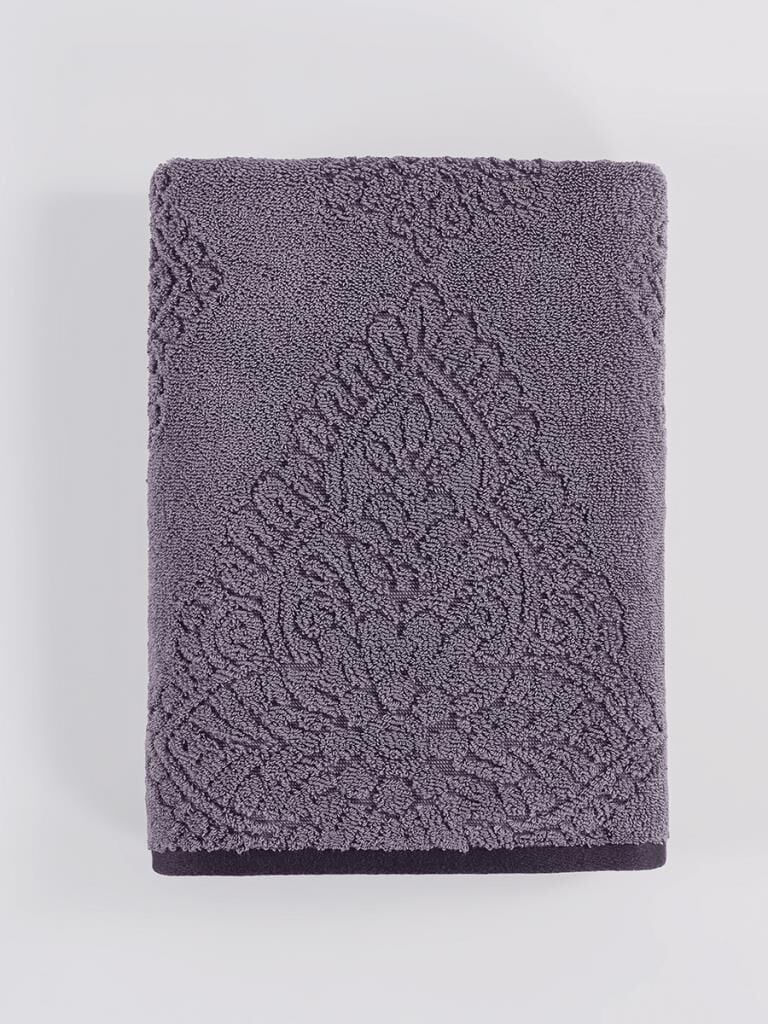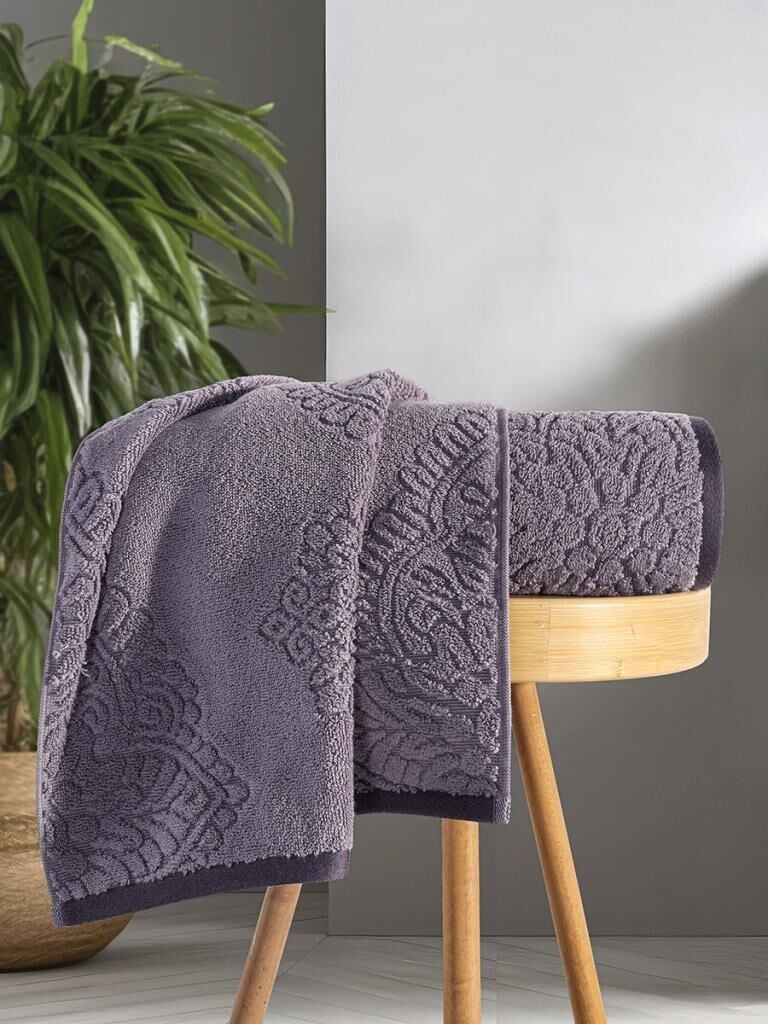 Pamuk Tekli Havlu Jakarlı Karna Premıum Vance - 70 x 140 Lila - 70 X 140