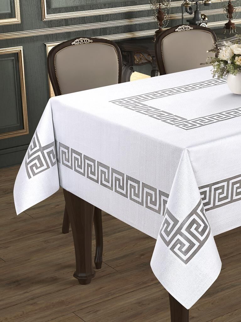 Masa Örtüsü Jakarlı Kardea Beyaz - 150 X 220