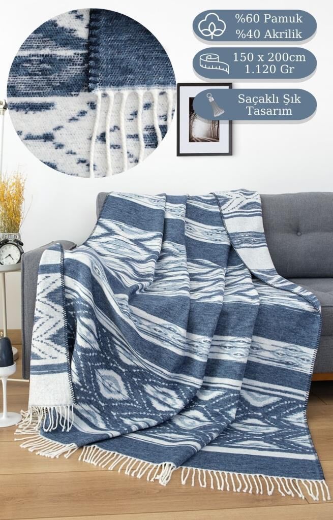 Tv Diz Battaniyesi Pamuk Frezze Mavi - 150 X 200
