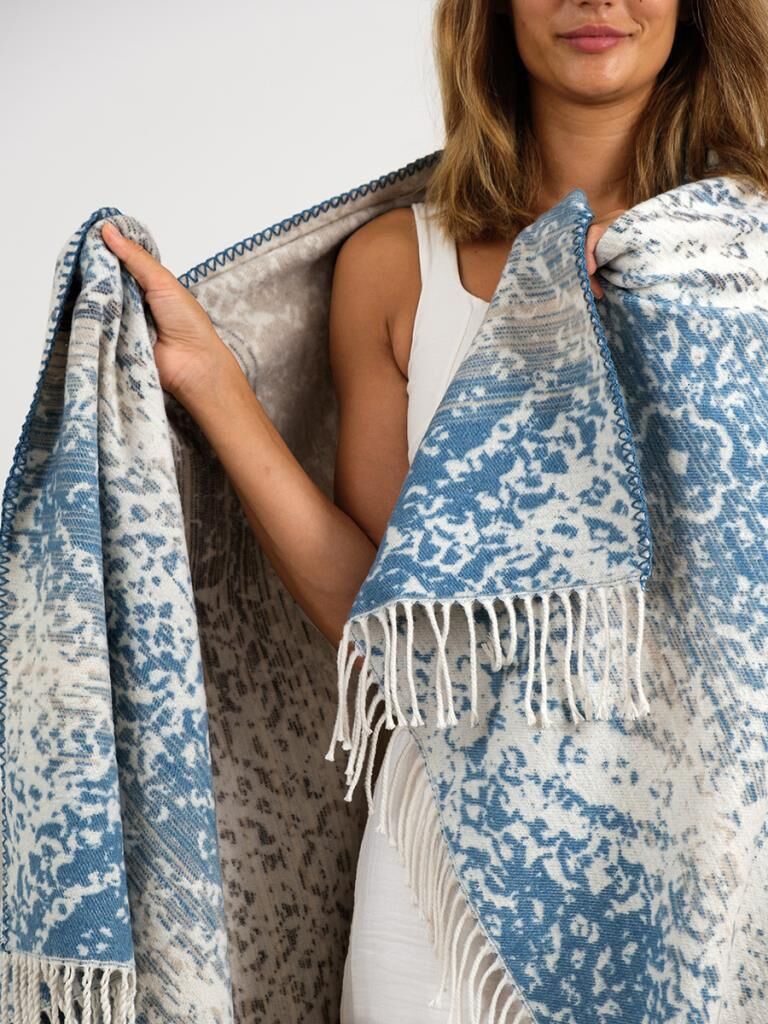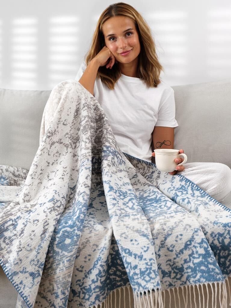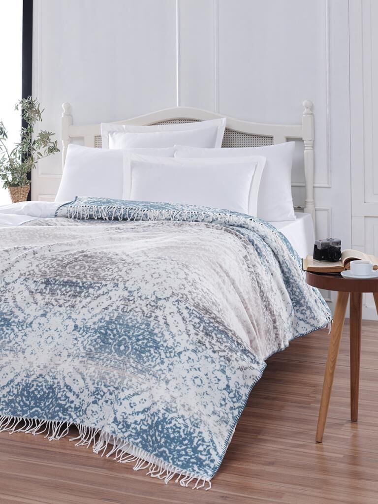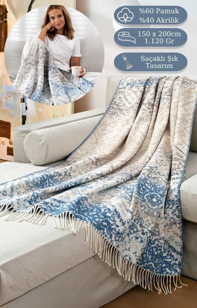 Tv Diz Battaniyesi Pamuk Morena Mavi - 150 X 200