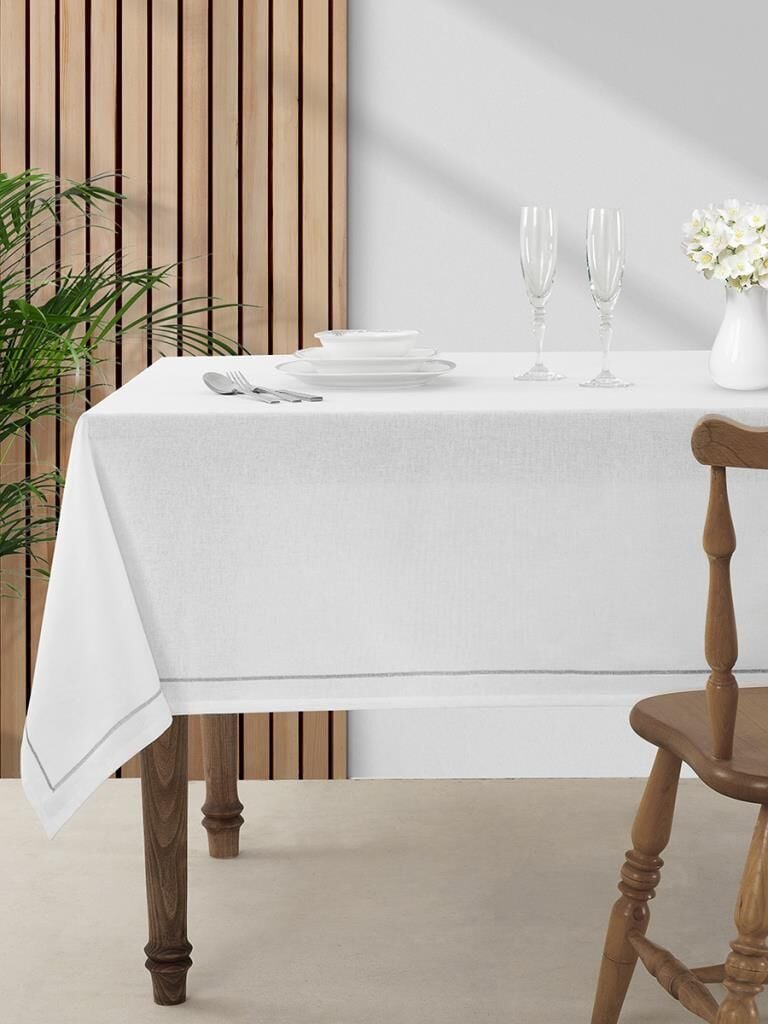 Nakışlı Beyaz Masa Örtüsü Lola Beyaz - 150 X 200