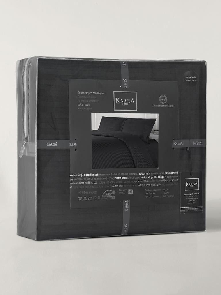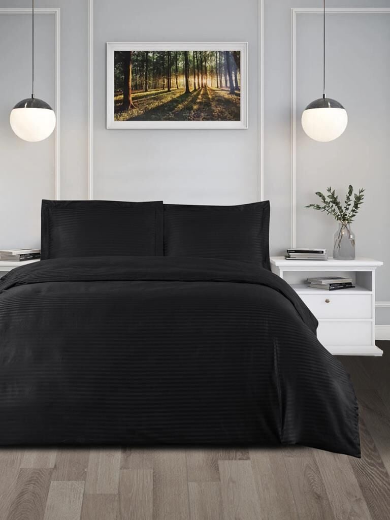 Nevresim Takımı Çizgili Cotton 200x220 200 X 220 - Siyah