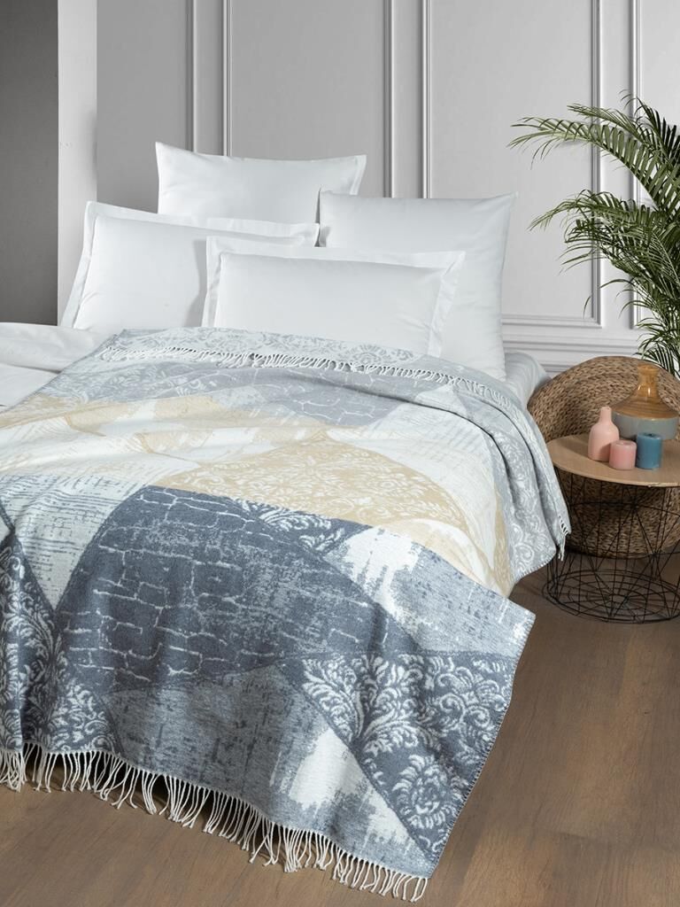 Pamuklu Tv Diz Battaniyesi Flaze Açık Gri - 200 X 220