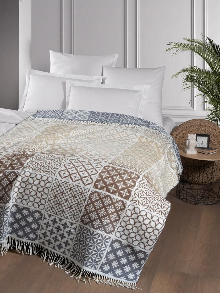 Pamuklu Tv Diz Battaniyesi Grafen Sütlü Kahverengi - 200 X 220