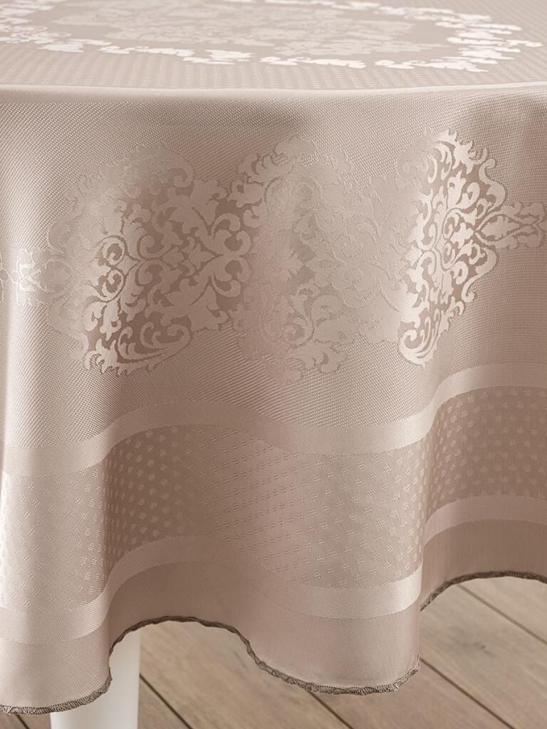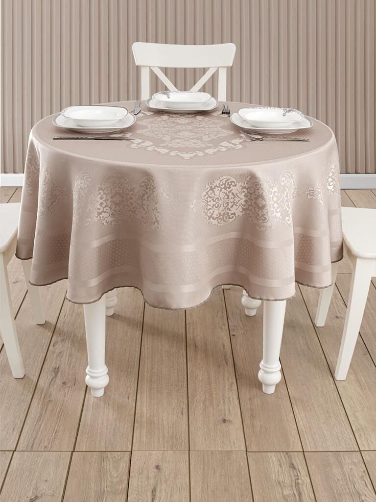 Pano Jakarlı Caramel Yuvarlak Masa Örtüsü Bej