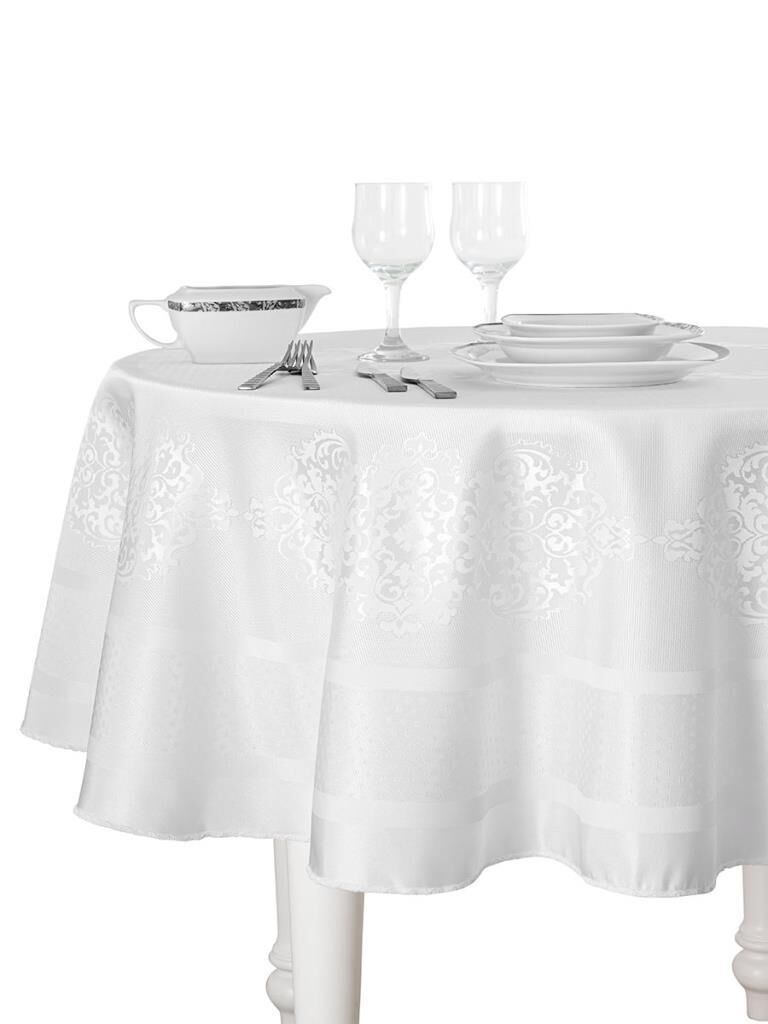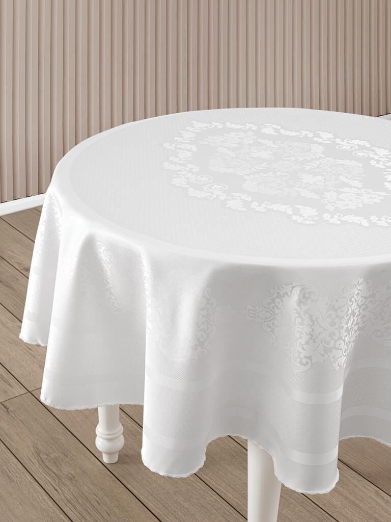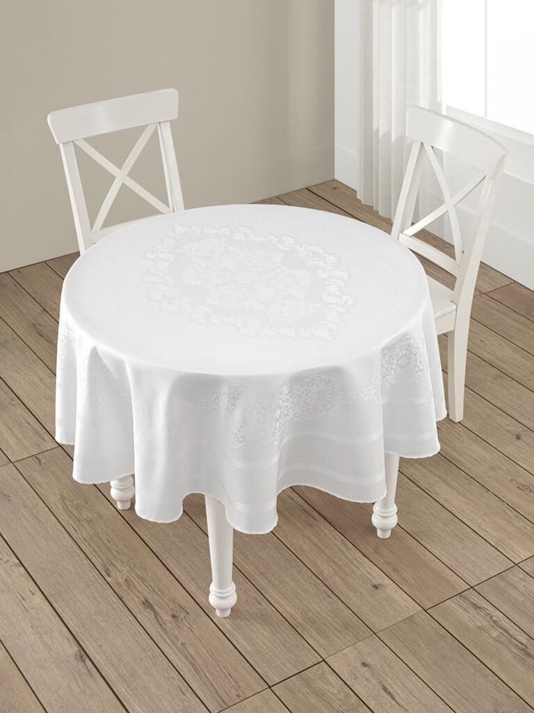 Pano Jakarlı Caramel Yuvarlak Masa Örtüsü Beyaz