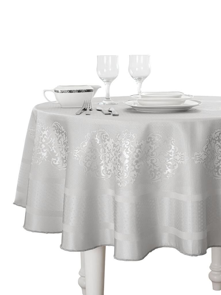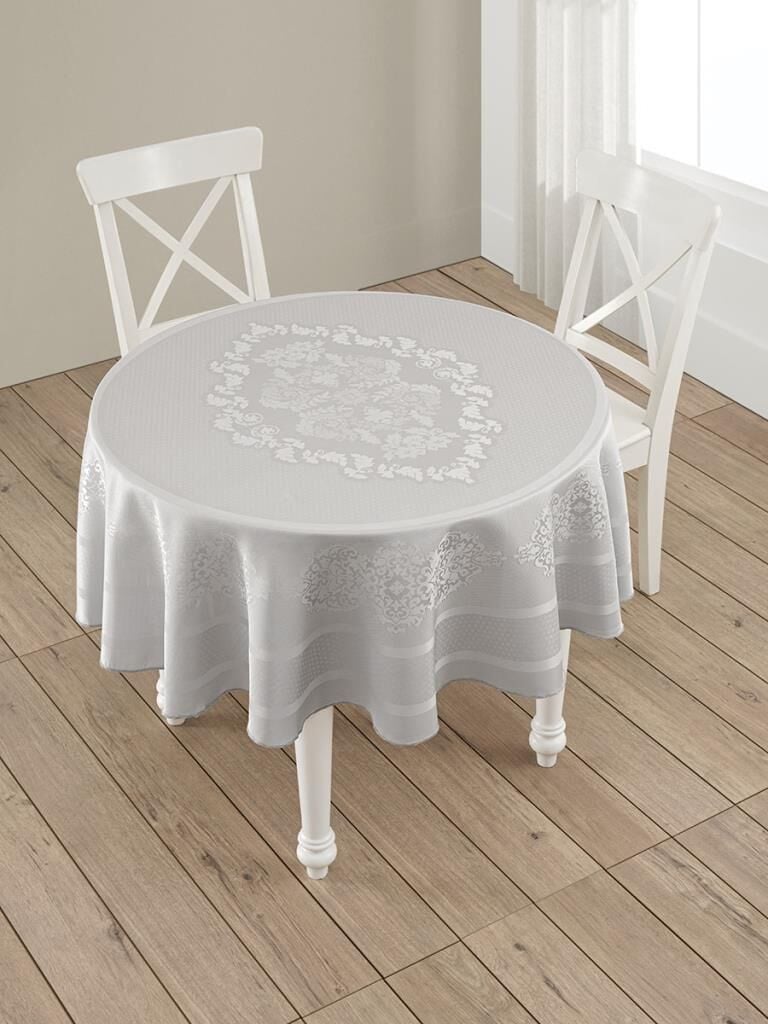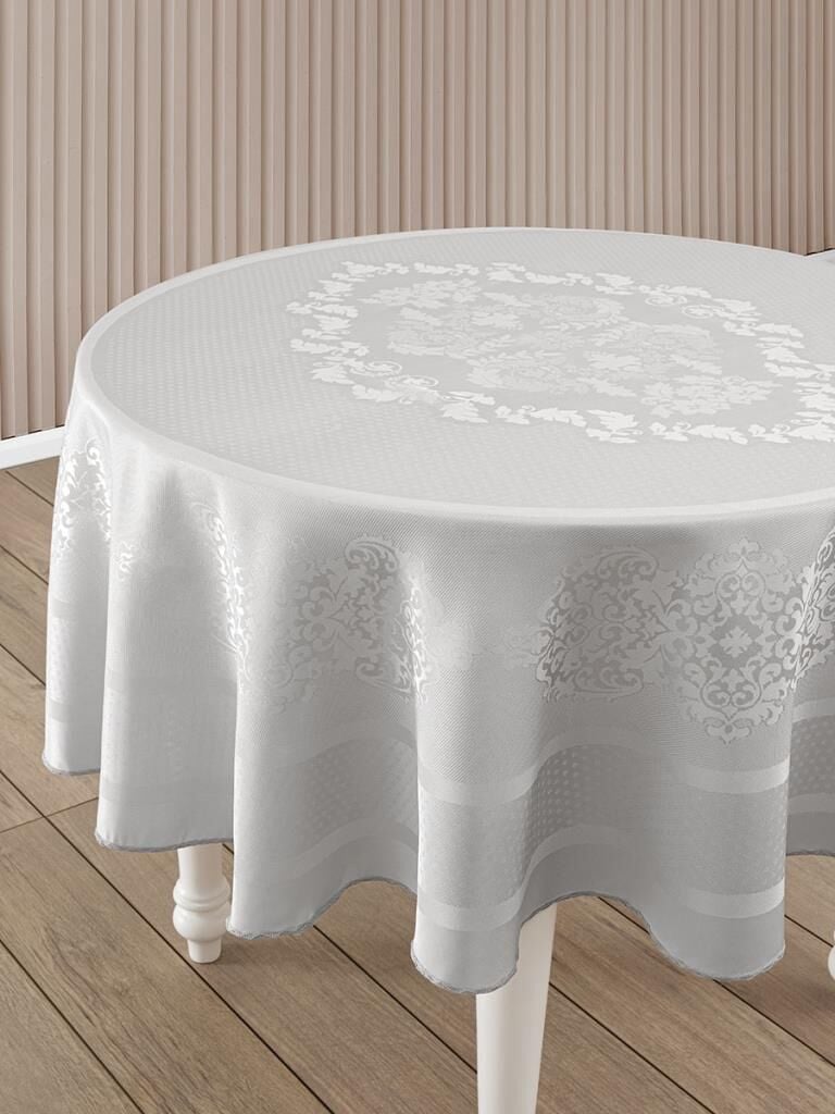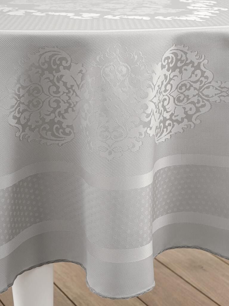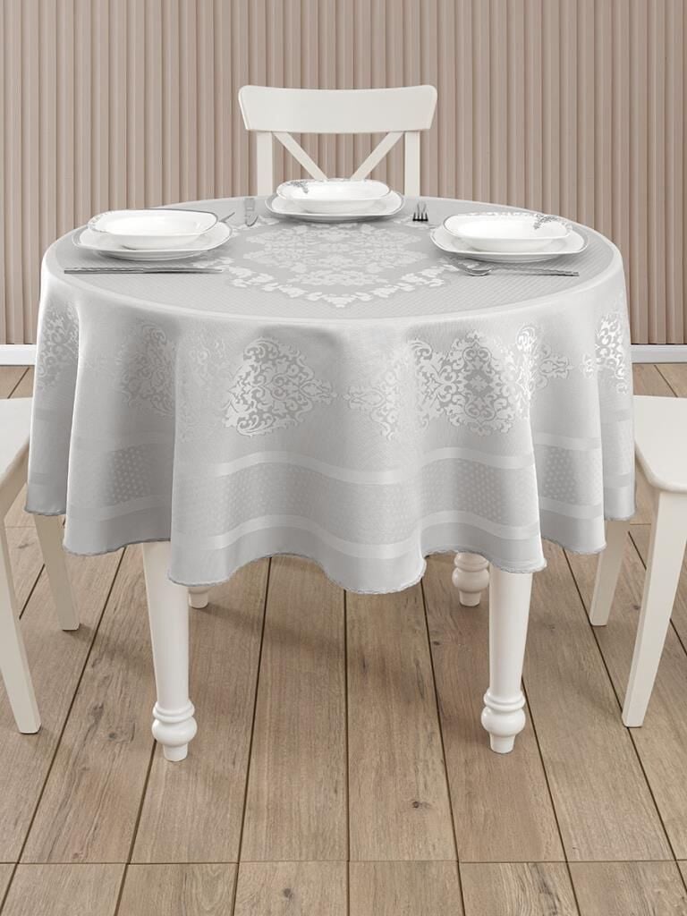 Pano Jakarlı Caramel Yuvarlak Masa Örtüsü Gri