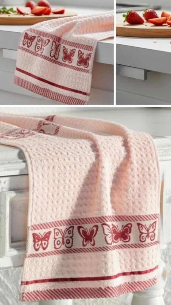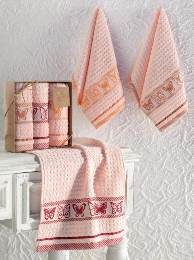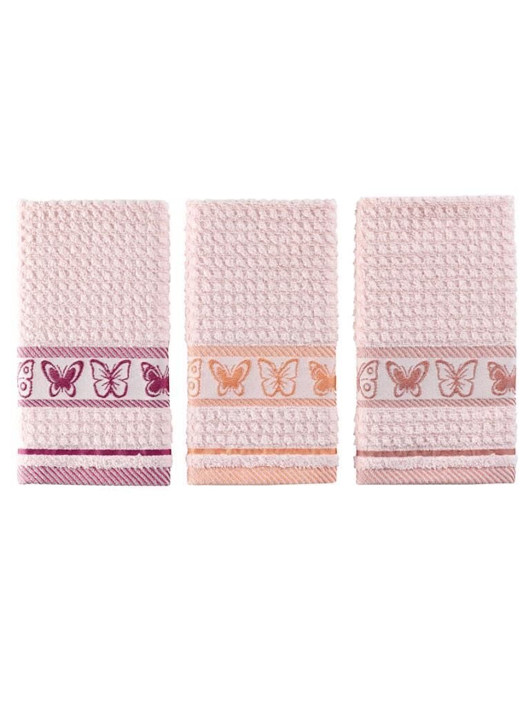 Mutfak Havlu Seti 3’lü Jakarlı Pamuk Butterfly 30x50 Pembe - 30 X 50