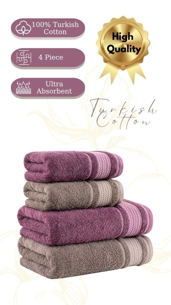 Dört parçadan oluşan bu set, ihtiyaç duyulan her boyutta havluyu bir arada sunar. Yıkama sonrasında formunu koruyan pamuk yapısı uzun süreli kullanımda bile yumuşaklığını ve dokusunu kaybetmez. Renk dayanımı yüksek özel dokuma teknolojisi sayesinde canlı bir görünüm sunar.
