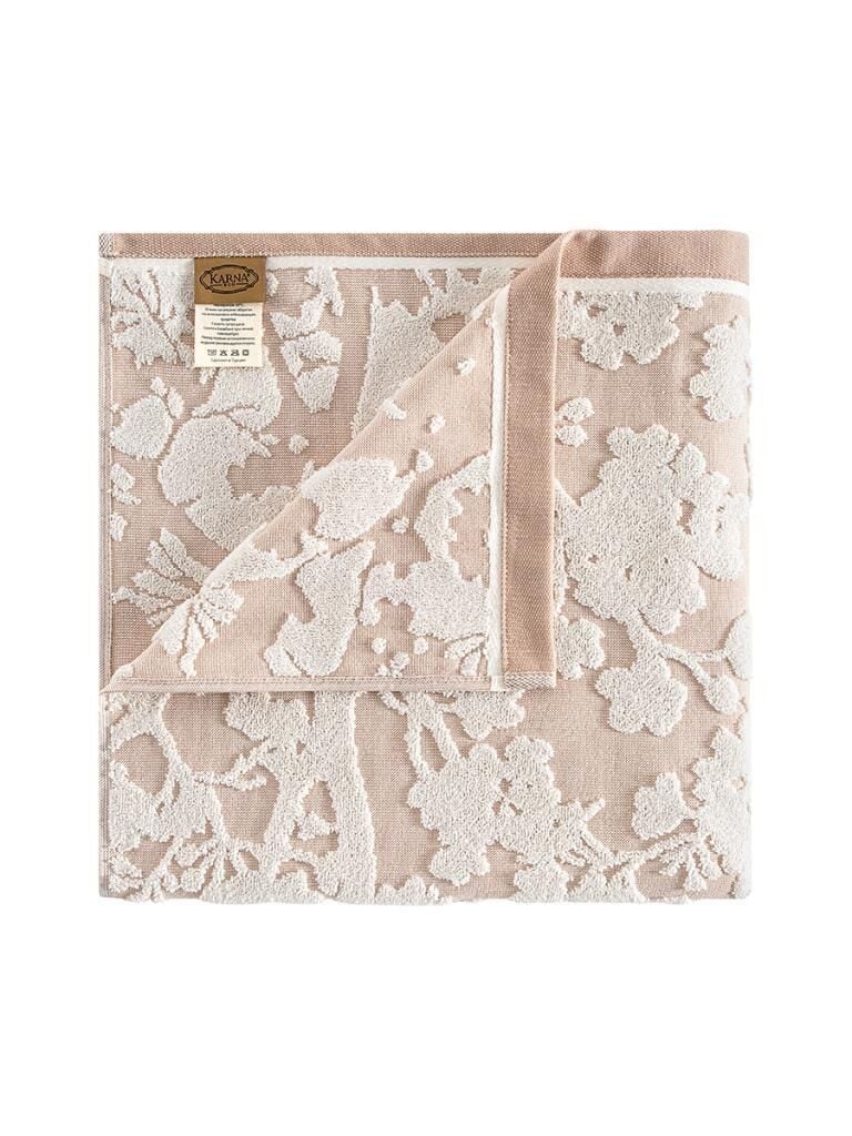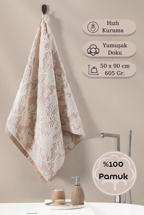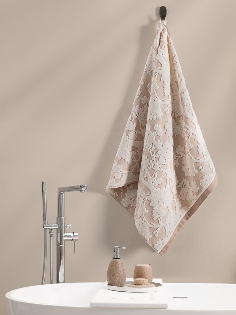 Pamuk Tekli Havlu Jakarlı Karna Eco Batıs - 50 x 90 Pudra - 50 X 90