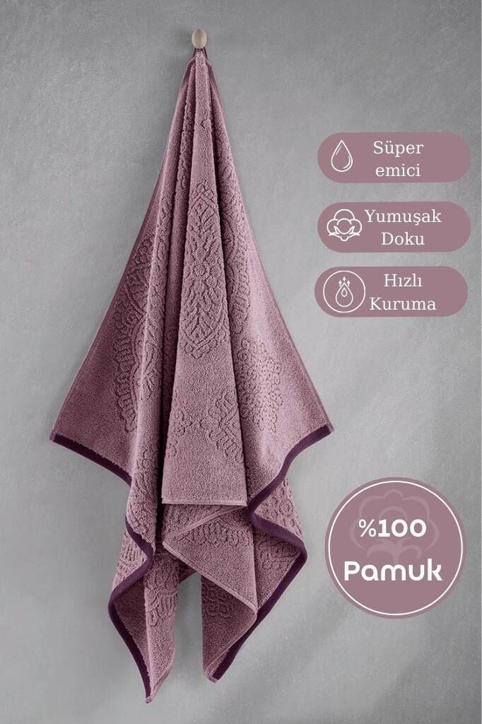 Pamuk Tekli Havlu Jakarlı Karna Premıum Vance - 70 x 140 Pudra - 70 X 140