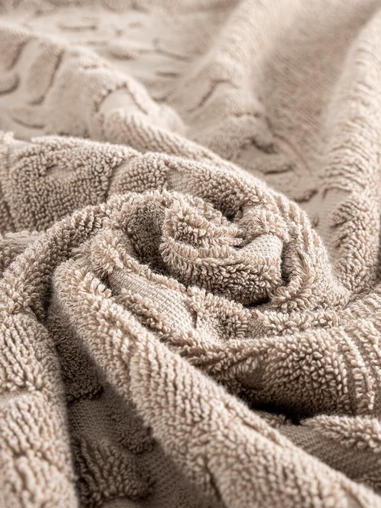 Pamuk Tekli Havlu Jakarlı Karna Premıum Sıbell - 50 x 90 Sütlü Kahverengi - 50 X 90