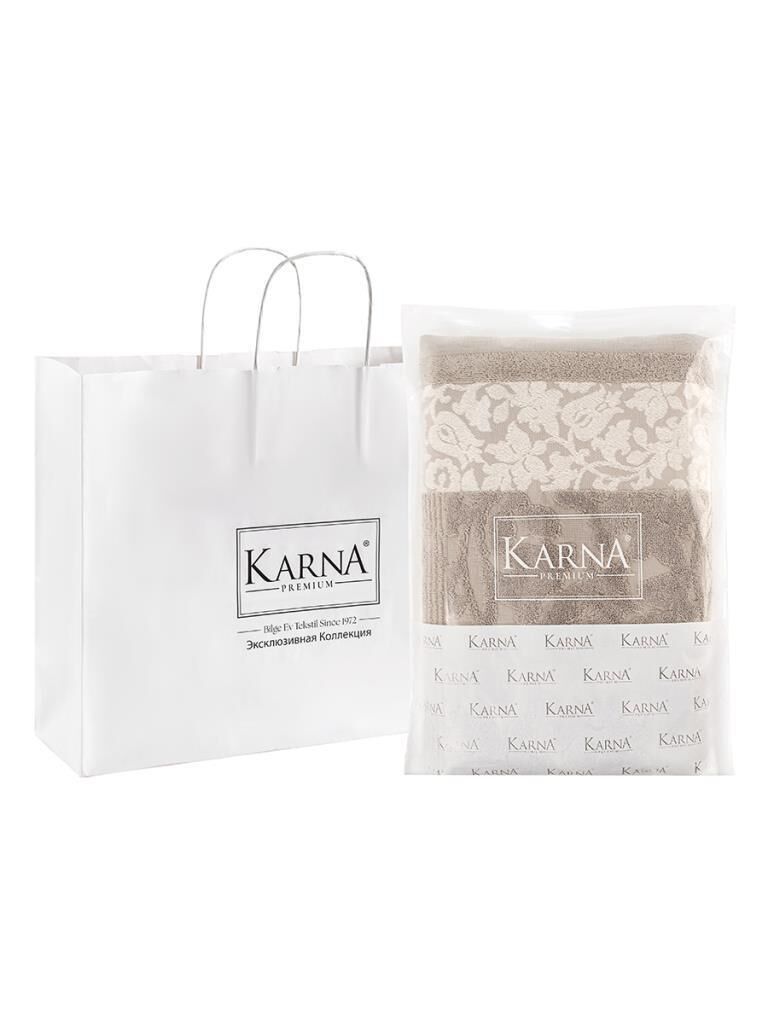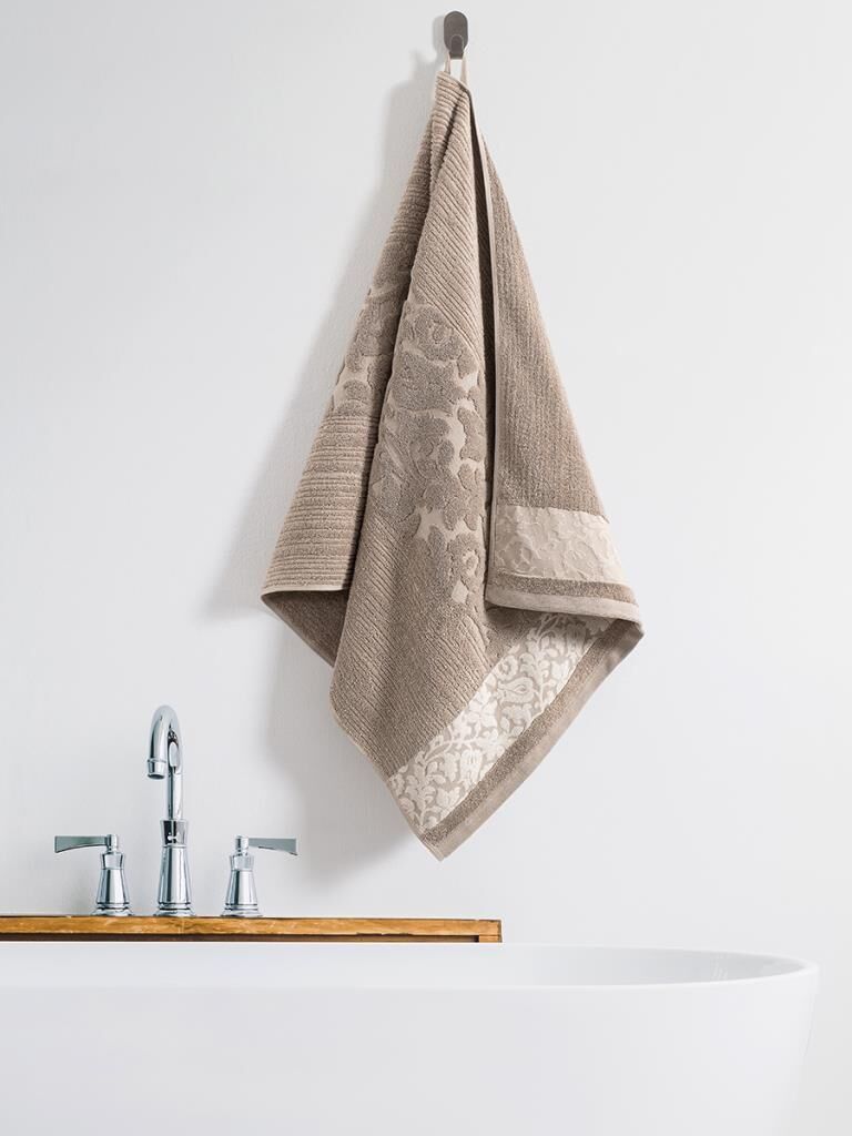Pamuk Tekli Havlu Jakarlı Karna Premıum Sıbell - 70 x 140 Sütlü Kahverengi - 70 X 140