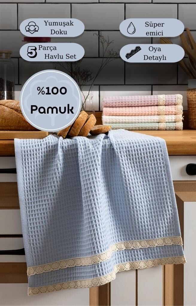 Mutfak Havlusu 40x60 cm 5’li Set Torshon Güpürlü Kopenaki V1 - 40 X 60