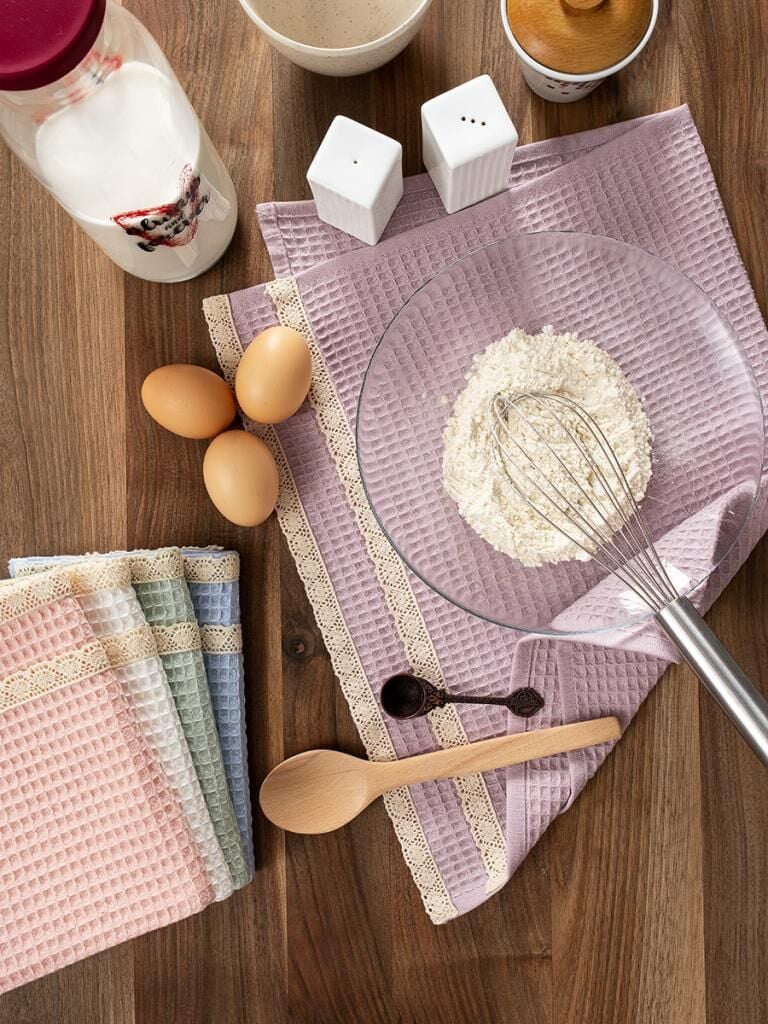 Mutfakta şıklık ve işlevselliği bir arada arayanlar için tasarlanan Kopenaki Güpürlü Mutfak Havlu Seti, %100 doğal pamuktan üretilmiştir. Yumuşak dokusu, yüksek emiciliği ve estetik görünümüyle mutfağınıza değer katar. Her bir havlu, kenarındaki zarif güpür detayıyla klasik mutfak havlularından ayrılır ve mutfağınıza lüks bir dokunuş getirir. Özel olarak seçilmiş renkleri sayesinde set içerisindeki tüm havlular birbirini tamamlar, uyumlu bir görünüm oluşturur. Vaflı dokusu, sıradan havlulara göre birkaç kat daha fazla emicilik sağlar. Dayanıklı yapısı uzun süre formunu korurken, kolay bakım özelliği sayesinde ütü gerektirmez ve renkleri yıkamalarda solmaz. 40x60 cm ölçülerindeki 5’li set, şık kutu ambalajıyla hem kendiniz için ideal bir tercih hem de sevdiklerinize hediye edebileceğiniz özel bir üründür. Türkiye’de özenle üretilmiştir.