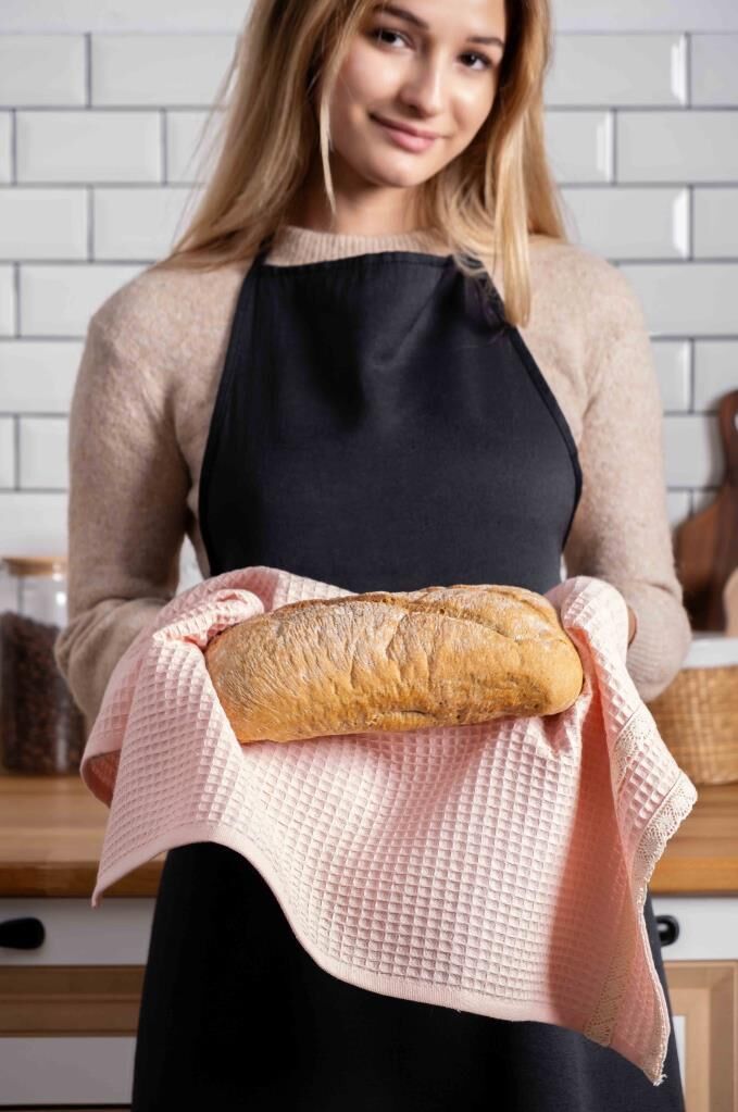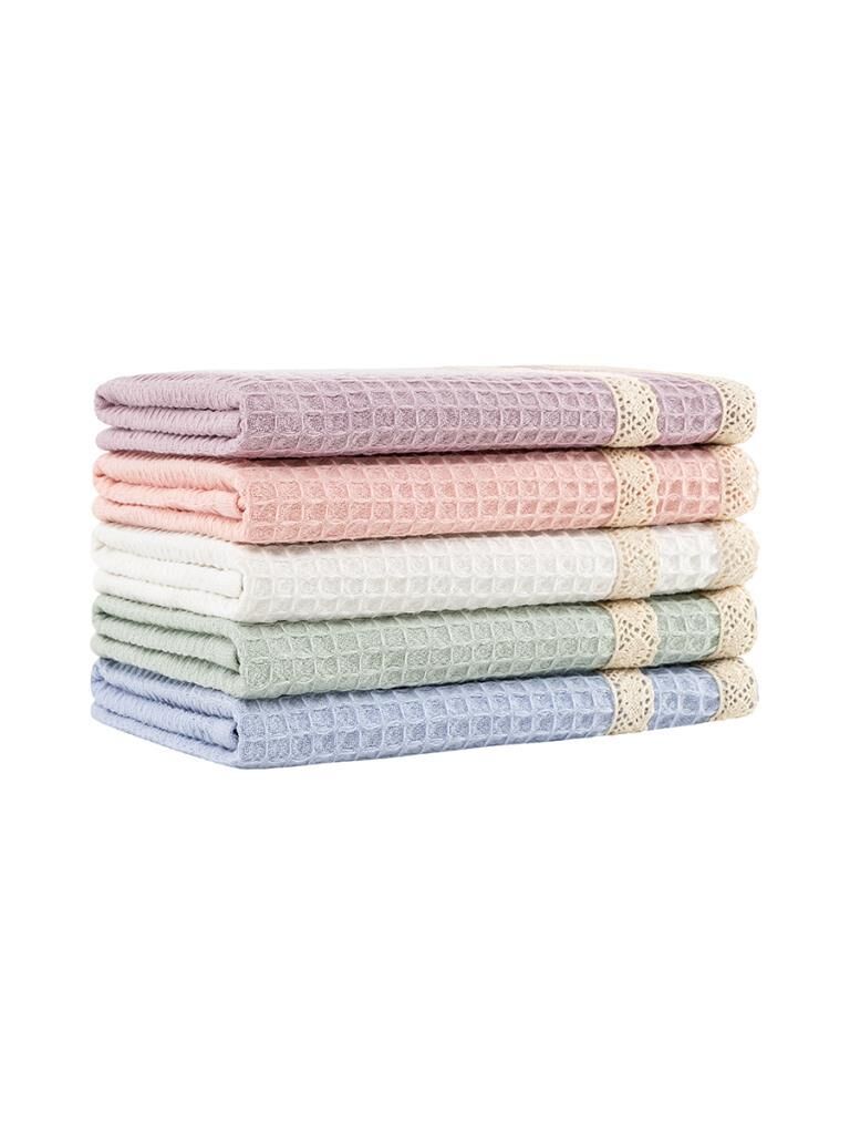Vaflı dokusu, sıradan havlulara göre birkaç kat daha fazla emicilik sağlar. Dayanıklı yapısı uzun süre formunu korurken, kolay bakım özelliği sayesinde ütü gerektirmez ve renkleri yıkamalarda solmaz.