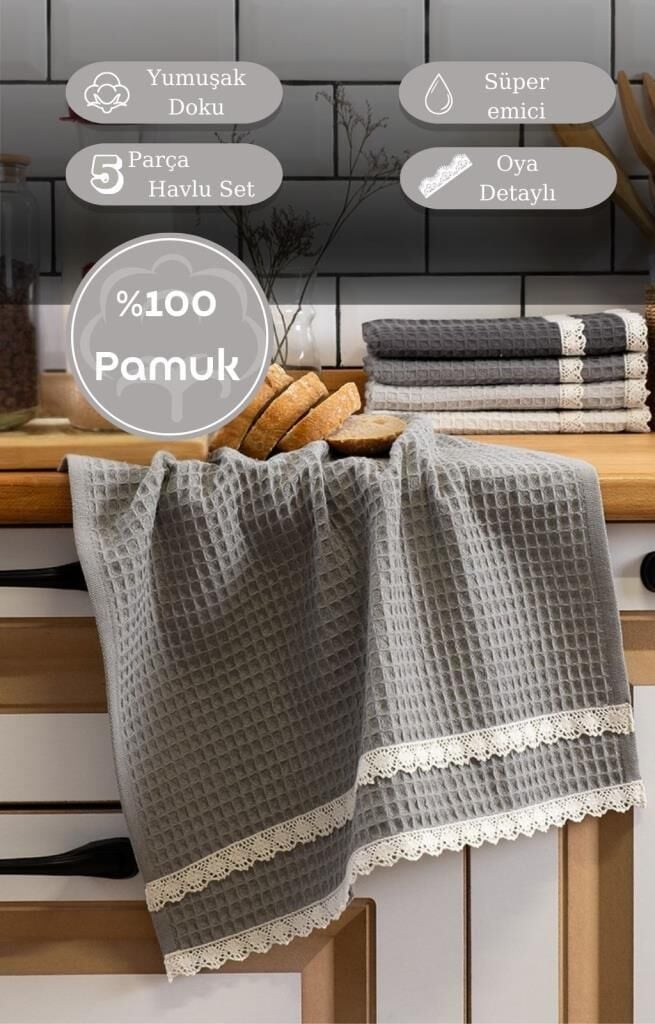 Mutfak Havlusu 40x60 cm 5’li Set Torshon Güpürlü Kopenaki V3 - 40 X 60
