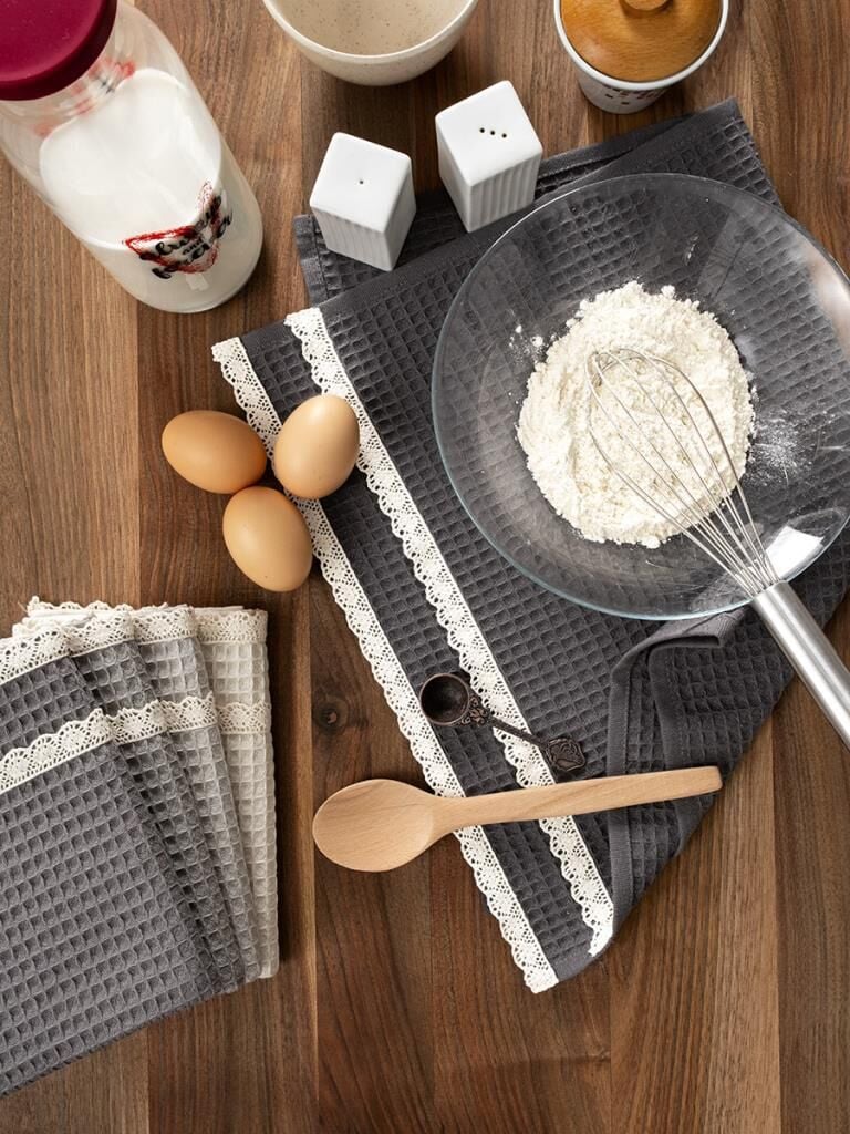 Mutfakta şıklık ve işlevselliği bir arada arayanlar için tasarlanan Kopenaki Güpürlü Mutfak Havlu Seti, %100 doğal pamuktan üretilmiştir. Yumuşak dokusu, yüksek emiciliği ve estetik görünümüyle mutfağınıza değer katar. Her bir havlu, kenarındaki zarif güpür detayıyla klasik mutfak havlularından ayrılır ve mutfağınıza lüks bir dokunuş getirir. Özel olarak seçilmiş renkleri sayesinde set içerisindeki tüm havlular birbirini tamamlar, uyumlu bir görünüm oluşturur. Vaflı dokusu, sıradan havlulara göre birkaç kat daha fazla emicilik sağlar. Dayanıklı yapısı uzun süre formunu korurken, kolay bakım özelliği sayesinde ütü gerektirmez ve renkleri yıkamalarda solmaz. 40x60 cm ölçülerindeki 5’li set, şık kutu ambalajıyla hem kendiniz için ideal bir tercih hem de sevdiklerinize hediye edebileceğiniz özel bir üründür. Türkiye’de özenle üretilmiştir.