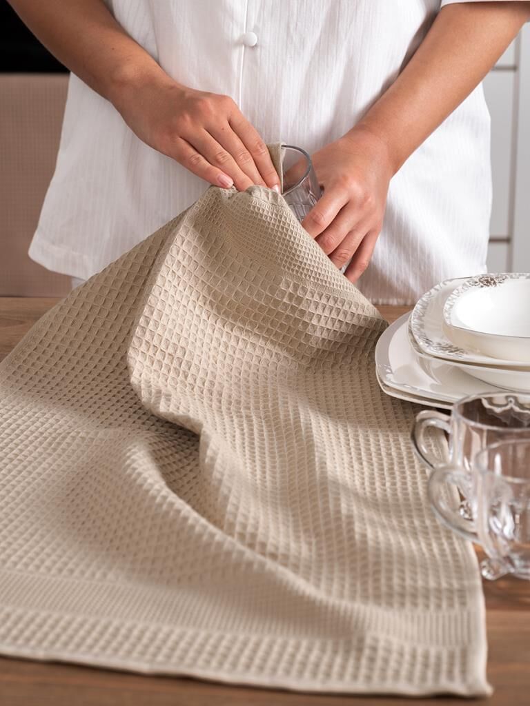 Mutfakta hem şıklık hem de pratiklik arayanlar için tasarlanan %100 pamuklu Napoli mutfak havlu seti, her detayıyla fark yaratıyor. Yumuşak dokusu ellerinizi nazikçe sararken, yüksek emiciliği sayesinde suyu anında içine hapseder. Vaflı dokusu sayesinde sıradan havlulara kıyasla birkaç kat daha fazla emicilik sunar. Üstelik dayanıklı yapısıyla sık yıkamalarda bile formunu, rengini ve şıklığını kaybetmez. 3’lü set olarak sunulan 45x70 cm ölçülerindeki Napoli mutfak havluları, hem günlük kullanımda hem de misafir sofralarında mutfağınıza estetik ve işlevsel bir dokunuş katar. Türkiye’de özenle üretilen bu mutfak havluları, mutfakta kaliteyi ve zarafeti bir arada arayanlar için ideal seçimdir.