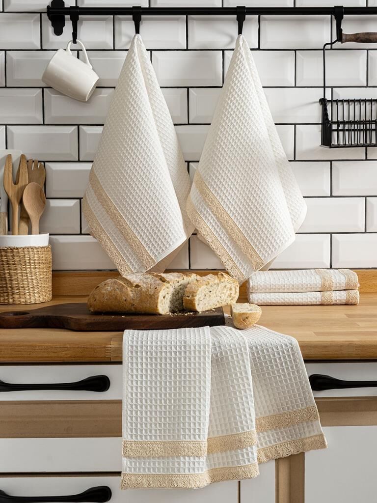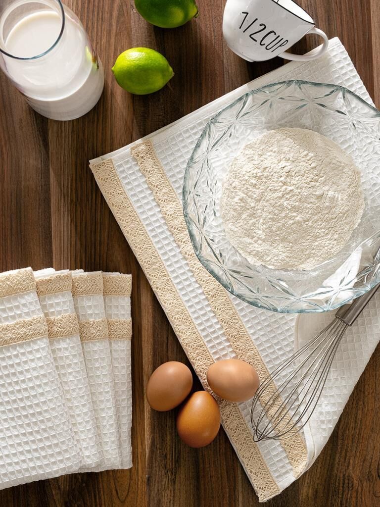 Mutfakta şıklık ve işlevselliği bir arada arayanlar için tasarlanan Kopenaki Güpürlü Mutfak Havlu Seti, %100 doğal pamuktan üretilmiştir. Yumuşak dokusu, yüksek emiciliği ve estetik görünümüyle mutfağınıza değer katar. Her bir havlu, kenarındaki zarif güpür detayıyla klasik mutfak havlularından ayrılır ve mutfağınıza lüks bir dokunuş getirir. Özel olarak seçilmiş renkleri sayesinde set içerisindeki tüm havlular birbirini tamamlar, uyumlu bir görünüm oluşturur. Vaflı dokusu, sıradan havlulara göre birkaç kat daha fazla emicilik sağlar. Dayanıklı yapısı uzun süre formunu korurken, kolay bakım özelliği sayesinde ütü gerektirmez ve renkleri yıkamalarda solmaz. 40x60 cm ölçülerindeki 5’li set, şık kutu ambalajıyla hem kendiniz için ideal bir tercih hem de sevdiklerinize hediye edebileceğiniz özel bir üründür. Türkiye’de özenle üretilmiştir.