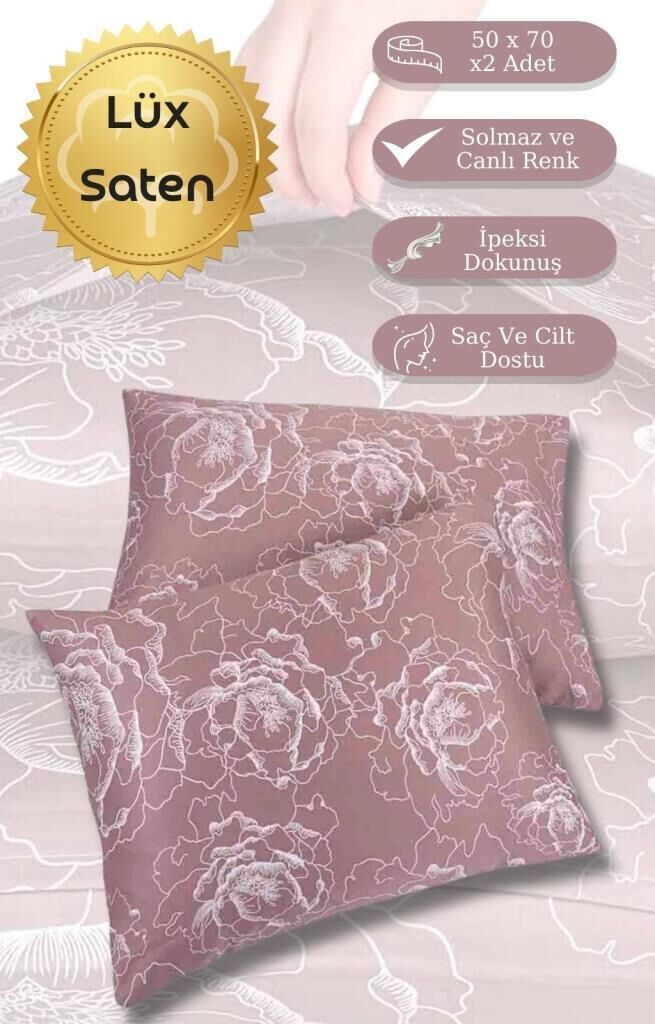 Yastık Kılıfı 2’li Saten Zarif Dokunuş Baskılı V1 - 50 X 70