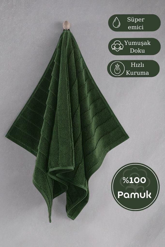 Pamuk Tekli Havlu Jakarlı Karna Premıum Venna - 70 x 140 Yeşil - 70 X 140